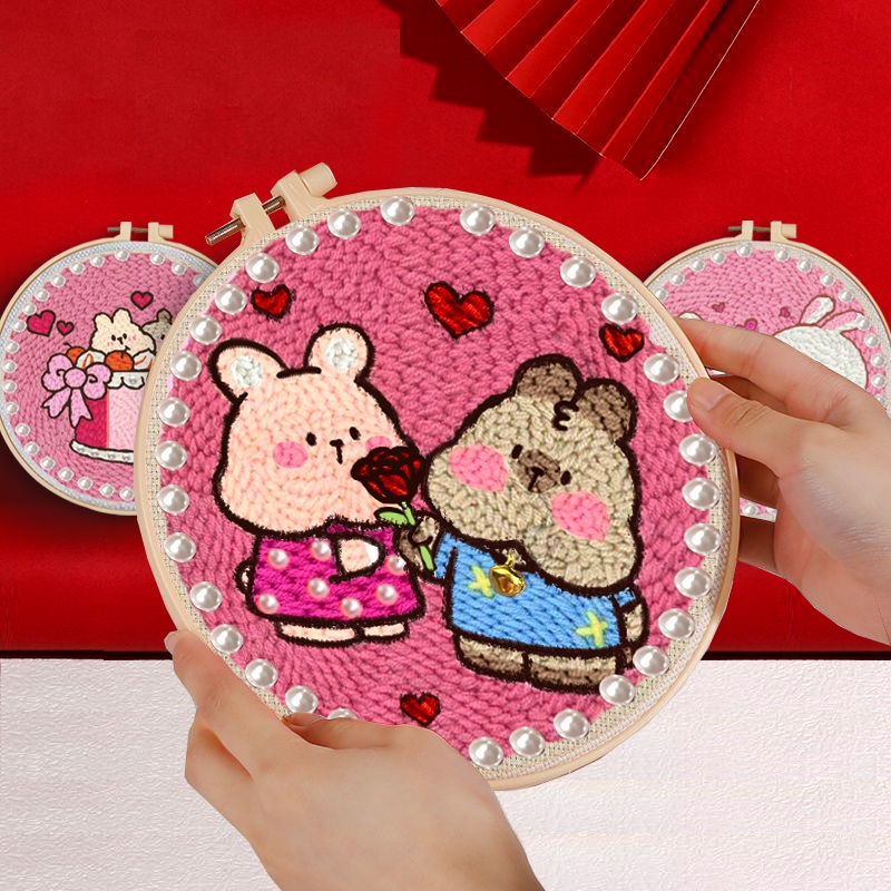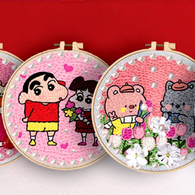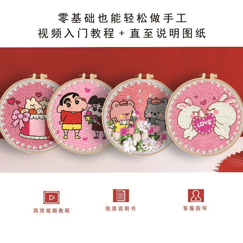 嫒制屋珍珠款毛线画戳戳绣手工diy材料包爱国卡通刺绣乐墩绣礼物,河南 平顶山
