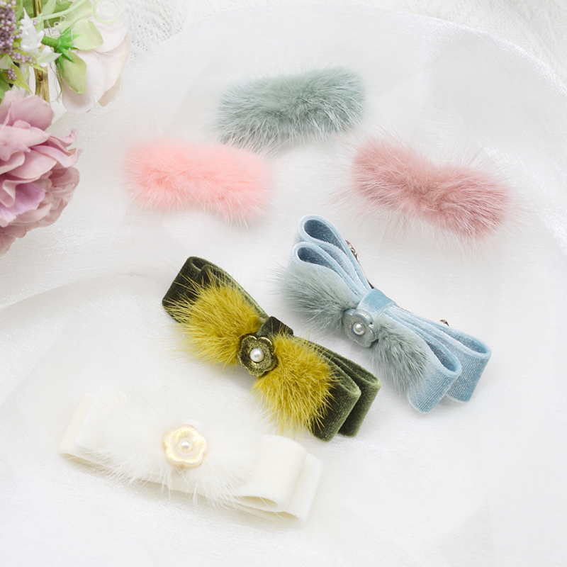 可爱小蝴蝶结形状水貂毛条手工diy儿童发夹装饰毛球秋冬饰品材料,福建 泉州
