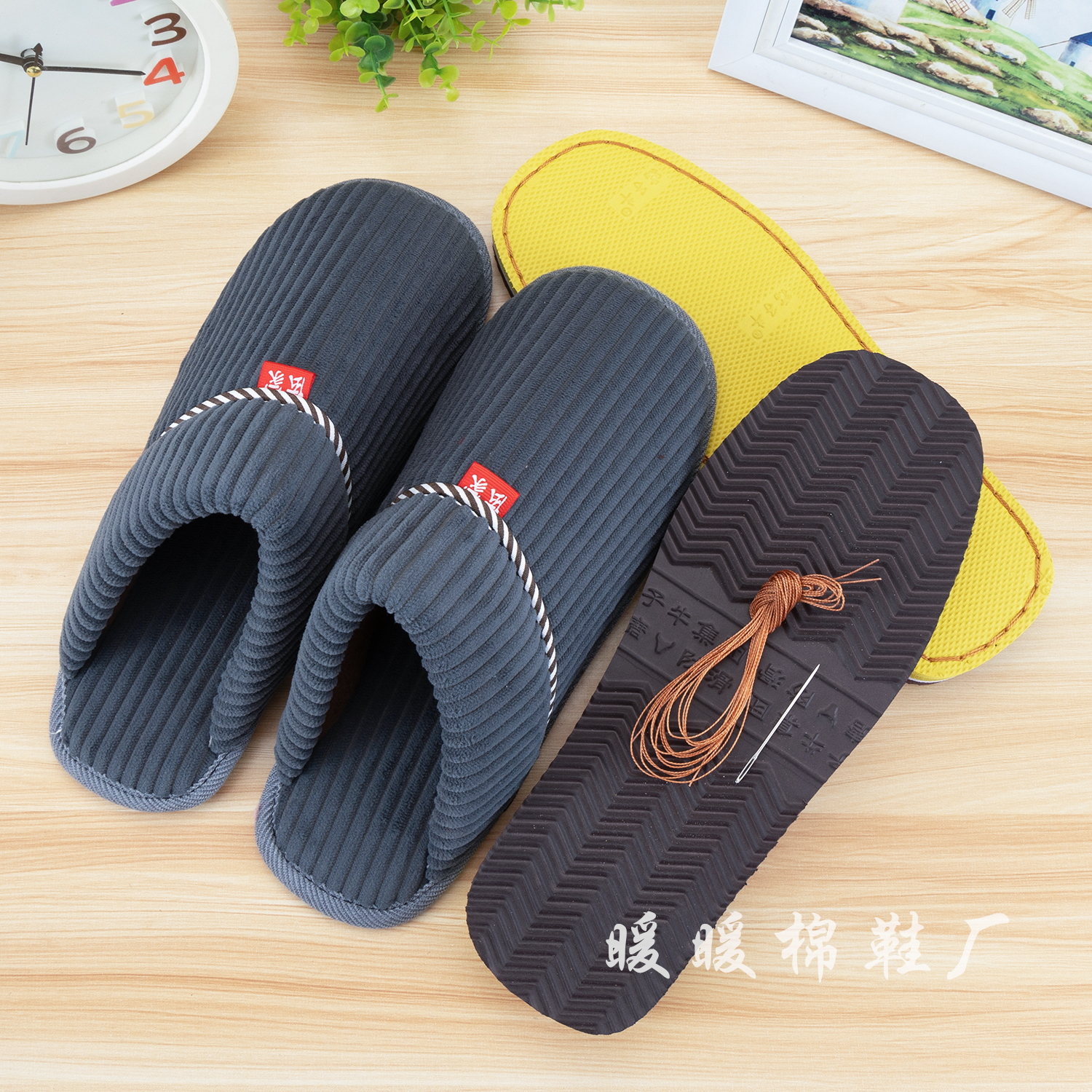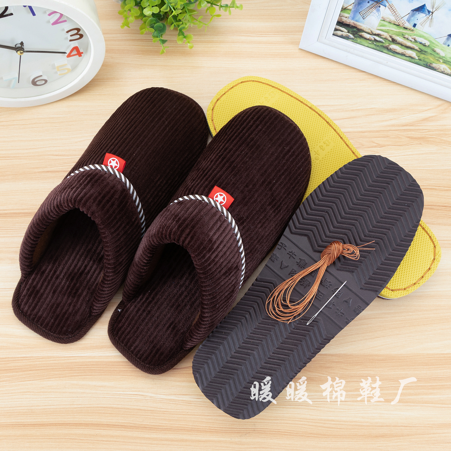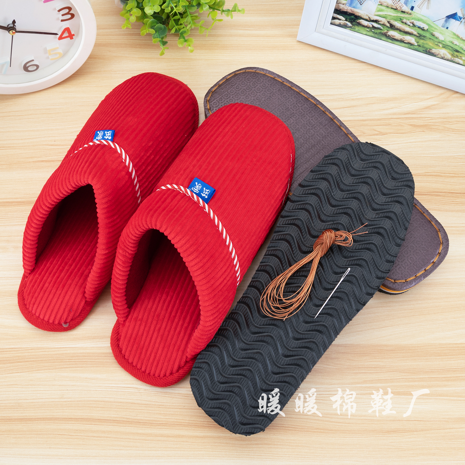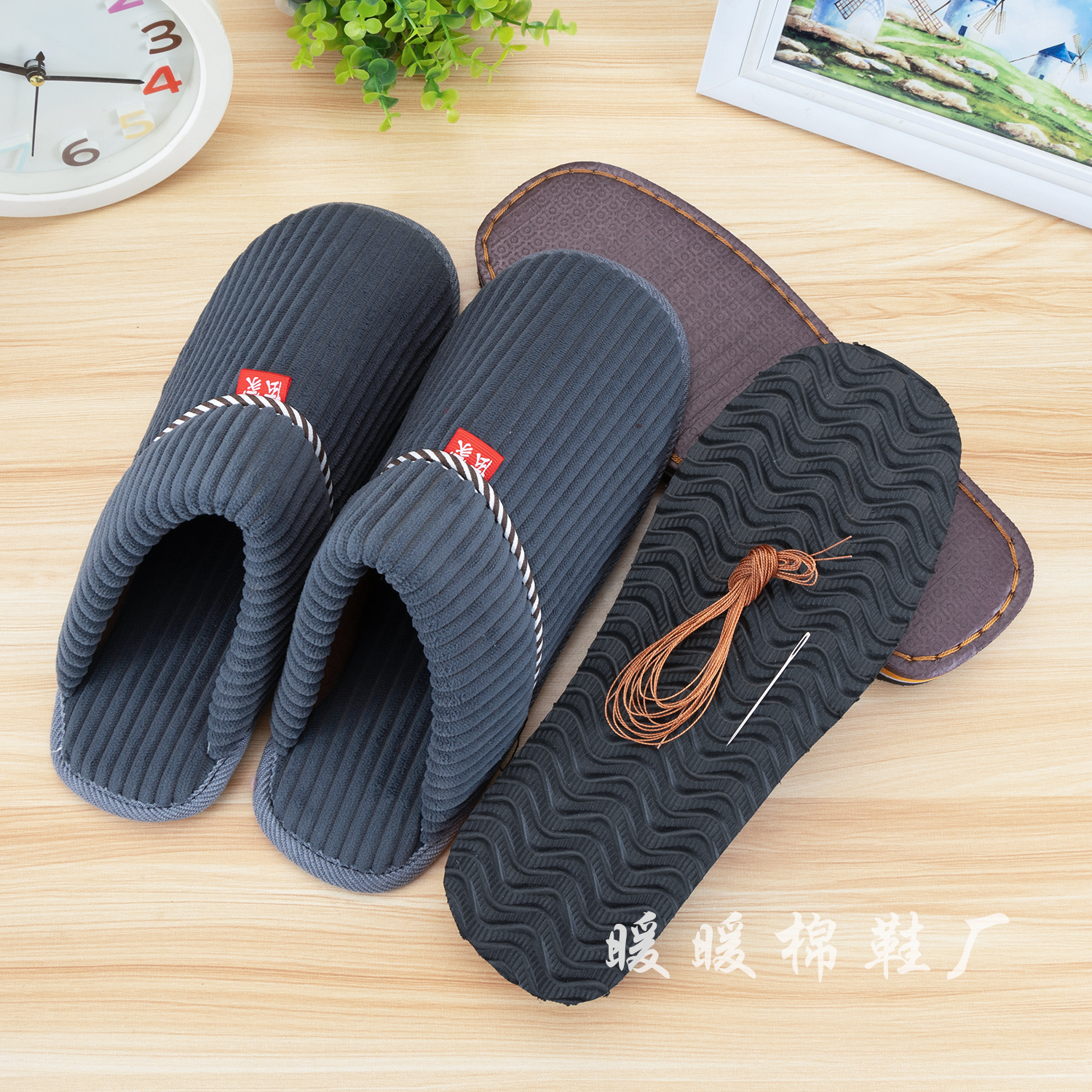 灯芯绒拖鞋帮+孺子牛鞋底半成品材料包手工布鞋帮冬季自己做拖鞋,安徽 安庆