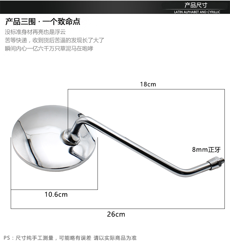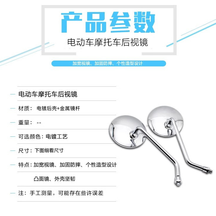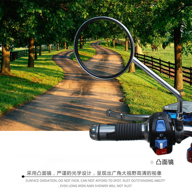 踏板车配件摩托车反光镜8mm后视镜适用小龟王电动车凸面倒车镜,河北 邢台