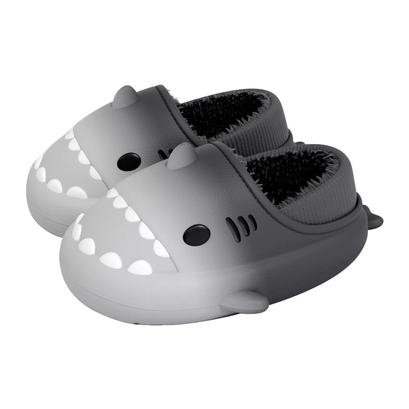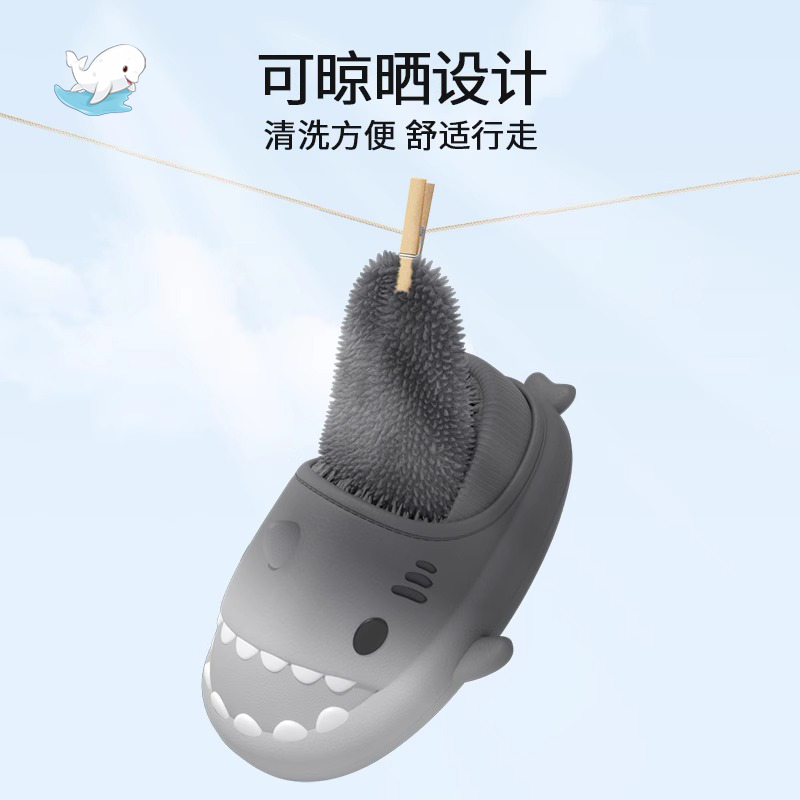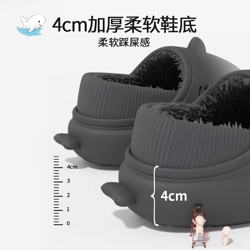渐变鲨鱼棉拖鞋居家室内保暖防水防滑包跟棉鞋男女抗菌冬毛毛拖鞋,福建 泉州