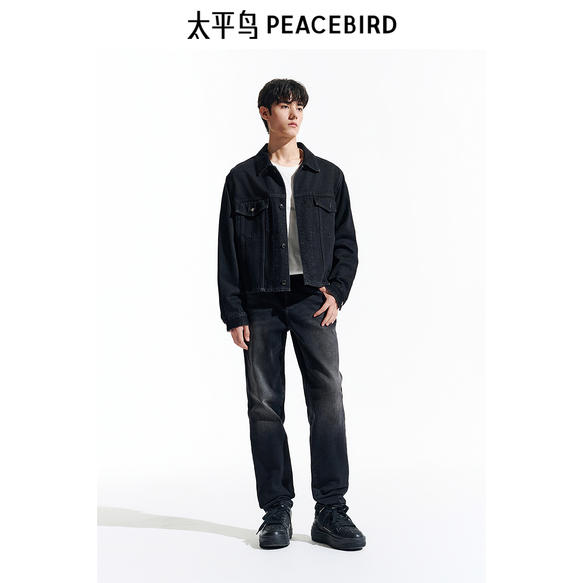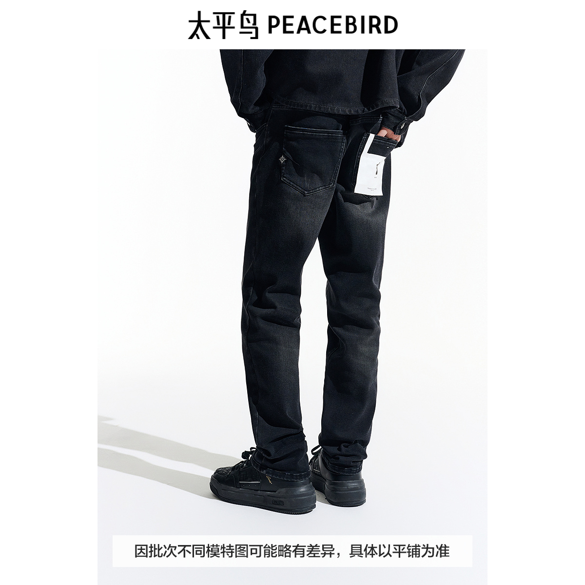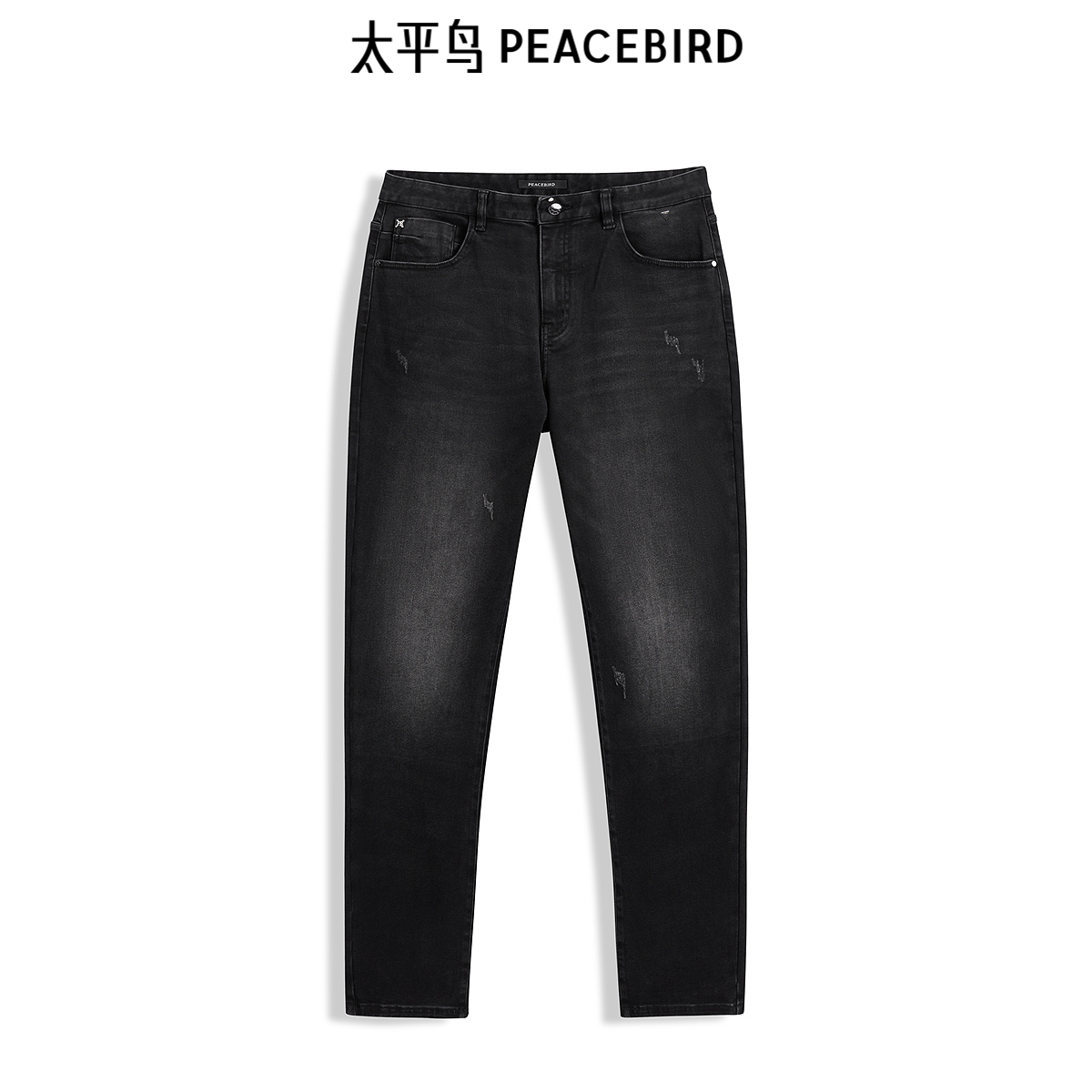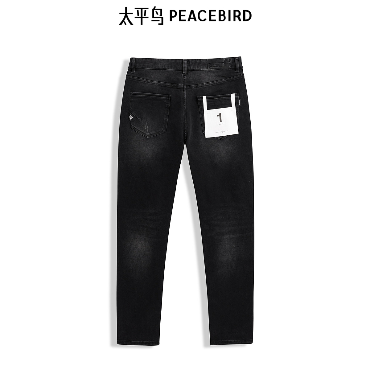 太平鸟男装 冬季紧身弹力牛仔裤灰色复古做旧缝标时尚长裤潮,浙江 宁波