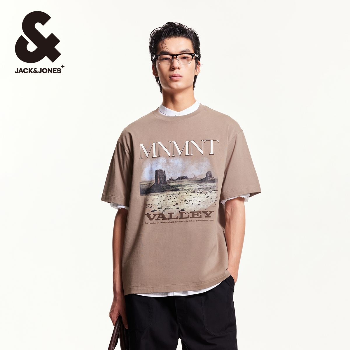 杰克琼斯男装2025年秋季新款纯棉宽松男士短袖T恤复古印花打底衫
