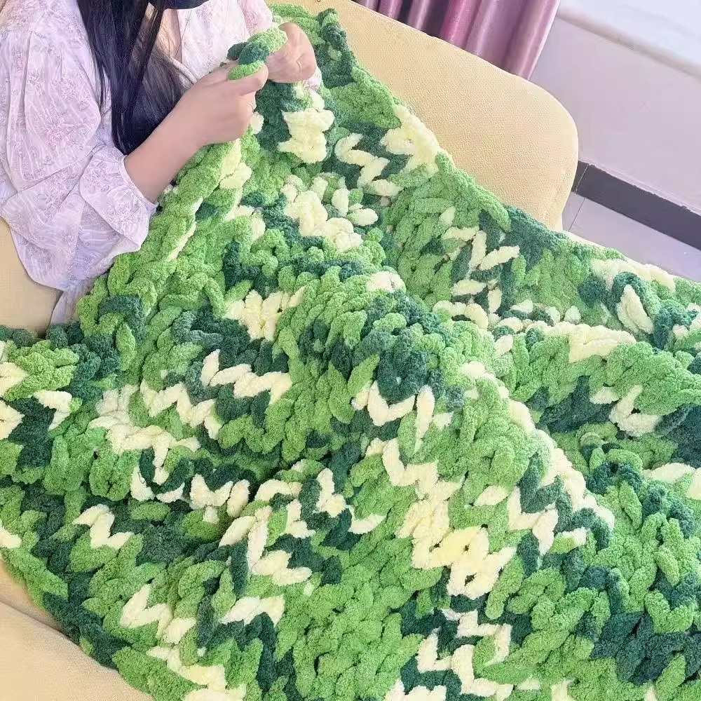 手工diy自制毛毯编织彩虹色被子粗毛线编织盖毯材料包送女友礼物
