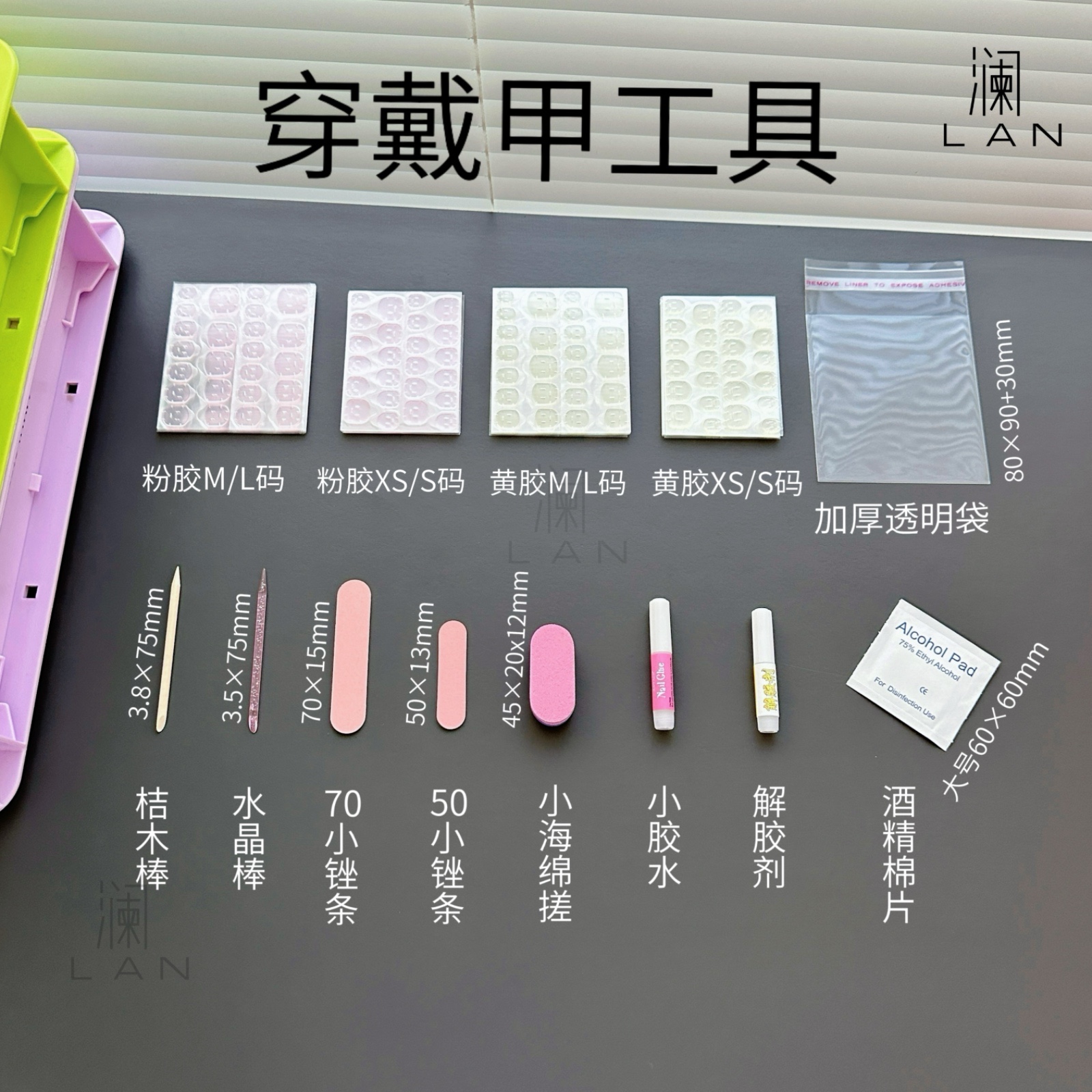 穿戴美甲工具包装袋配件材料小水晶锉条搓果冻胶水酒精棉片迷你