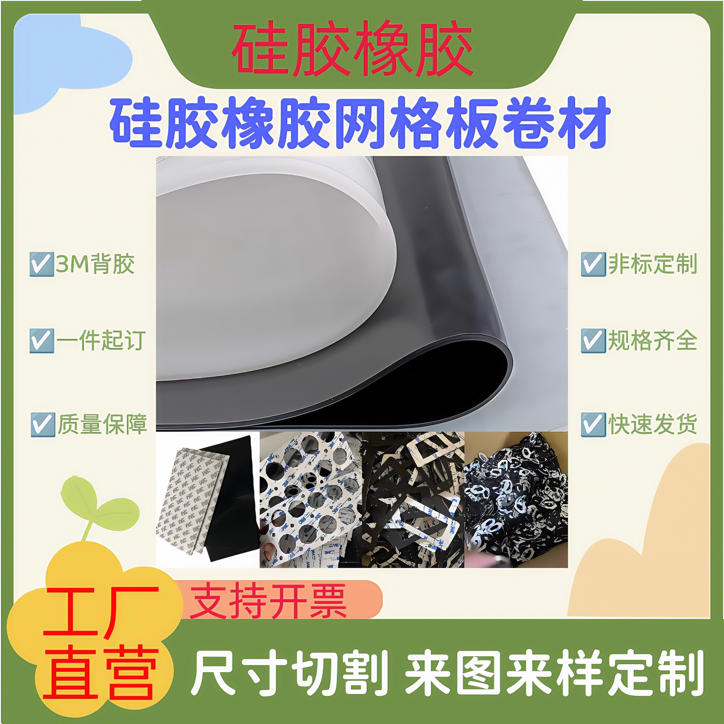 硅胶板硅胶垫片网格硅橡胶3M背胶耐高低温密封垫减震定制非标加工,广东 潮州