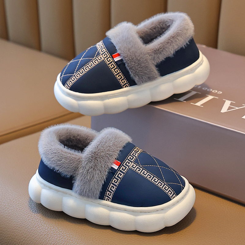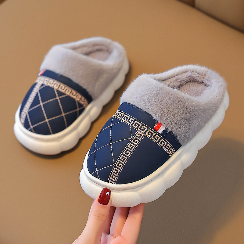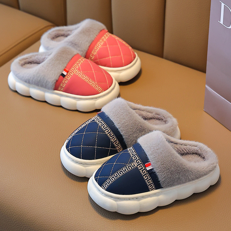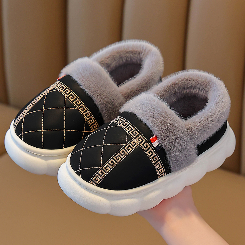 冬季亲子室内棉拖鞋包跟加绒加厚pu皮防水男女童居家保暖儿童棉鞋,浙江 杭州