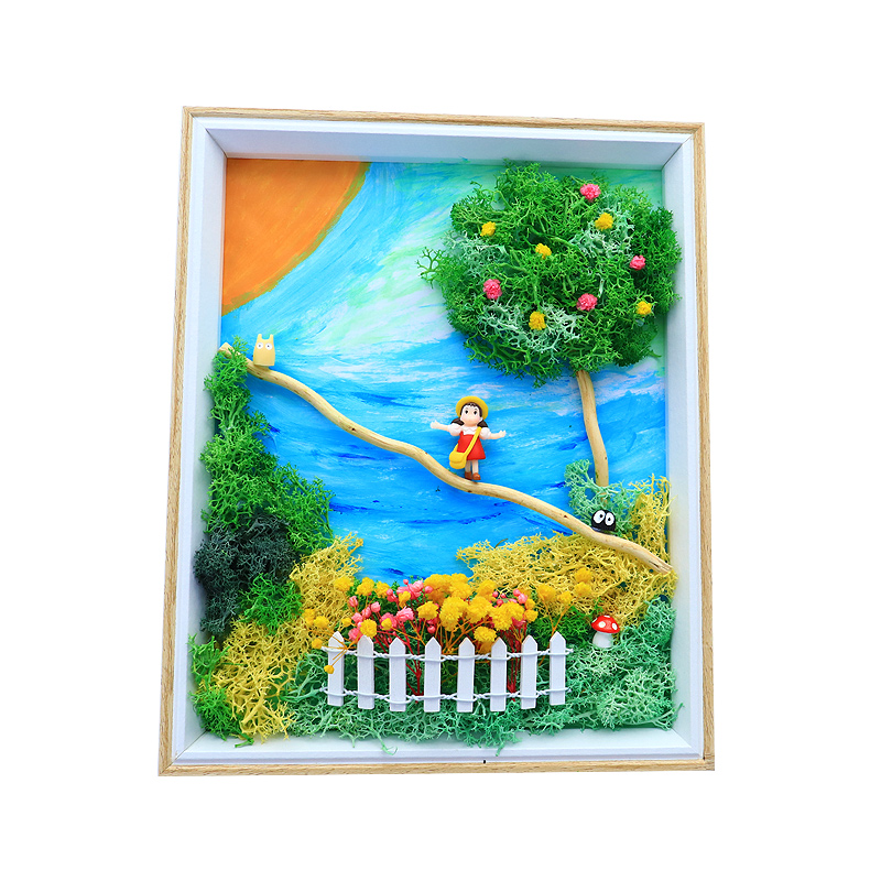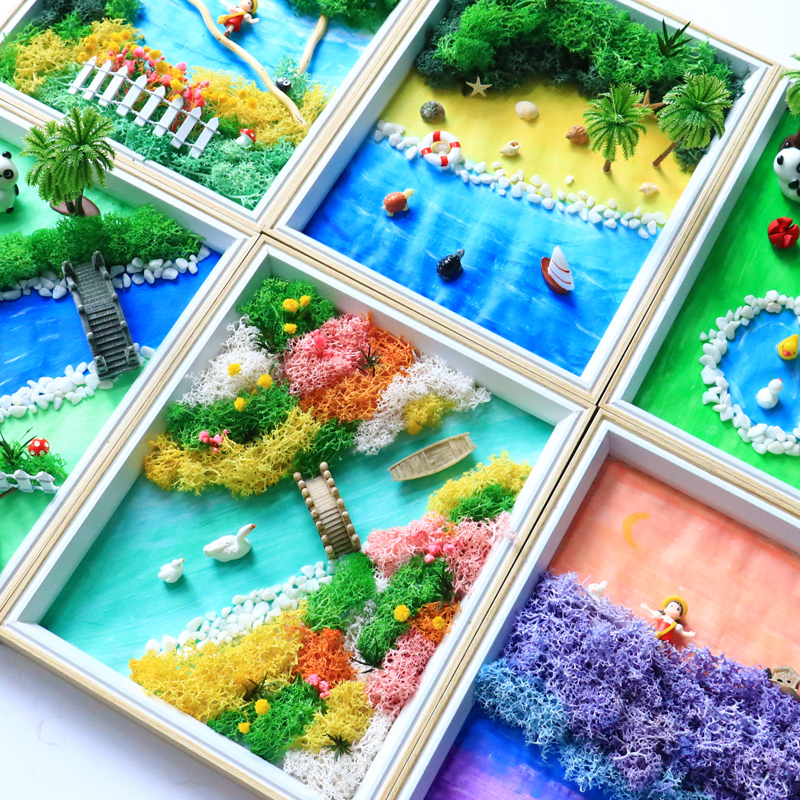 永生苔藓画diy材料包竹编框植物画创意儿童绘画手工相框活动暖场