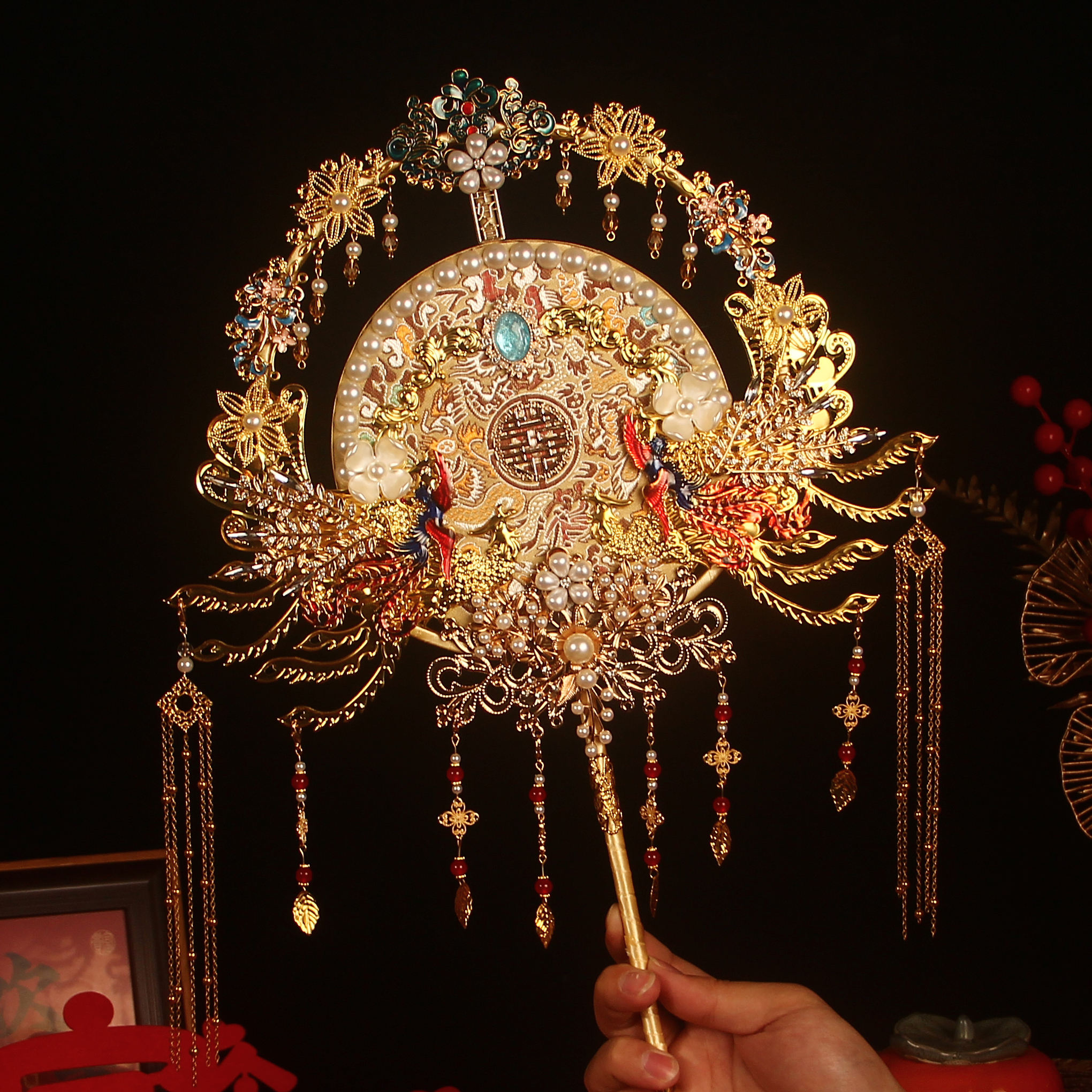 团扇新娘结婚中式婚礼出嫁高级双面重手工diy材料包成品喜扇秀禾,江苏 南通
