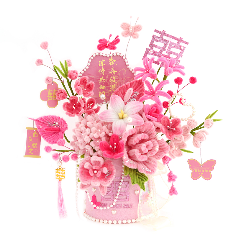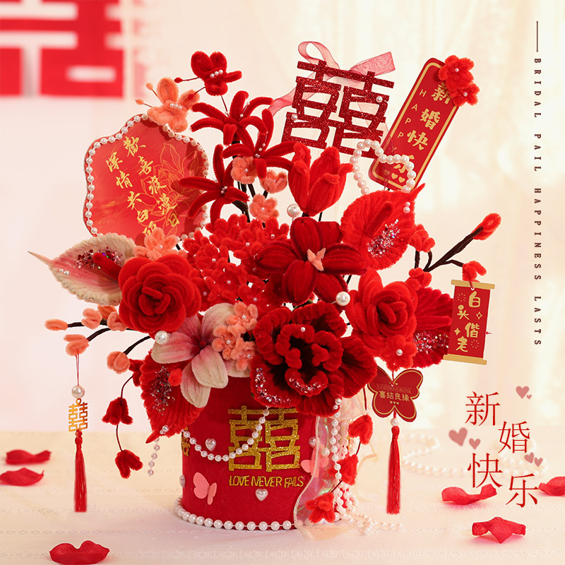 结婚送新人礼物扭扭棒花束手工编织花桶抱抱桶diy材料包新婚礼品