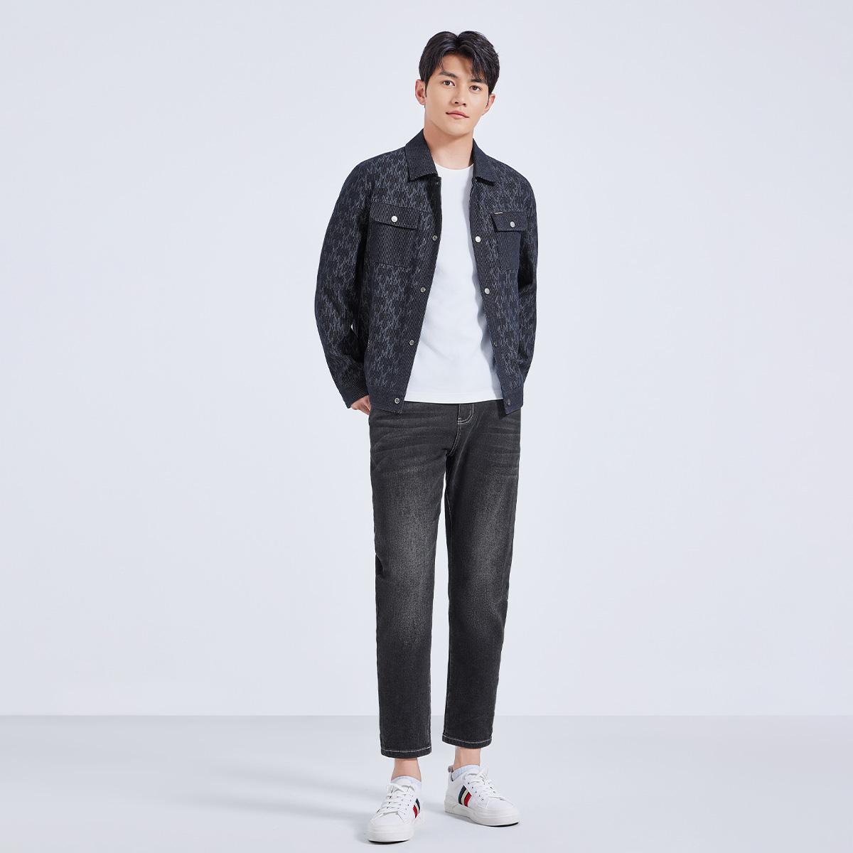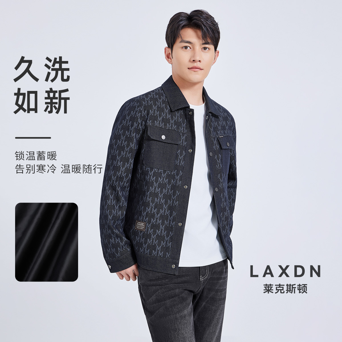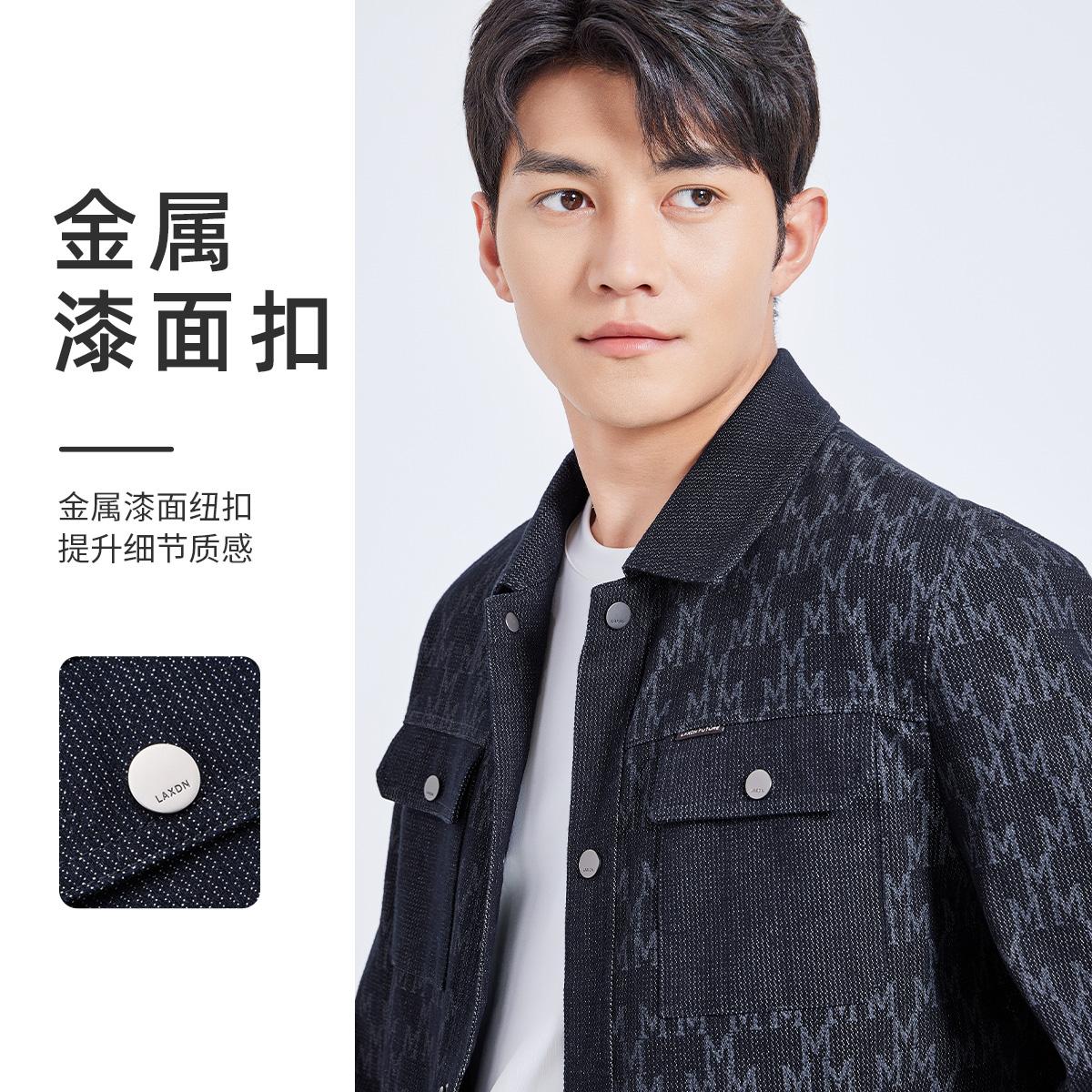 莱克斯顿2025春秋新款雪花字母肌理外套男装翻领夹克保暖休闲上衣,广东 中山