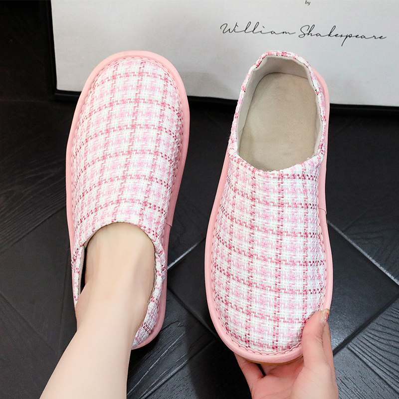 春秋季两穿布艺包跟棉拖鞋男女居家用卧室内防滑软底静音地板棉鞋,浙江 嘉兴