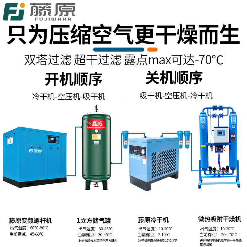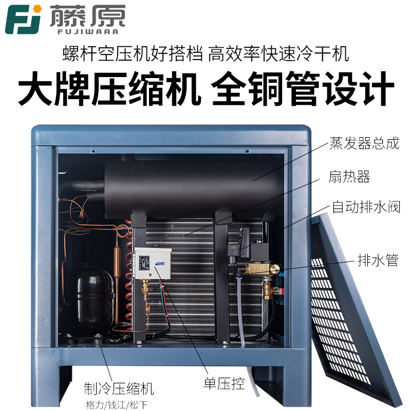藤原高温型冷干机冷冻式干燥机空压机压缩空气过滤器工业级冻干机