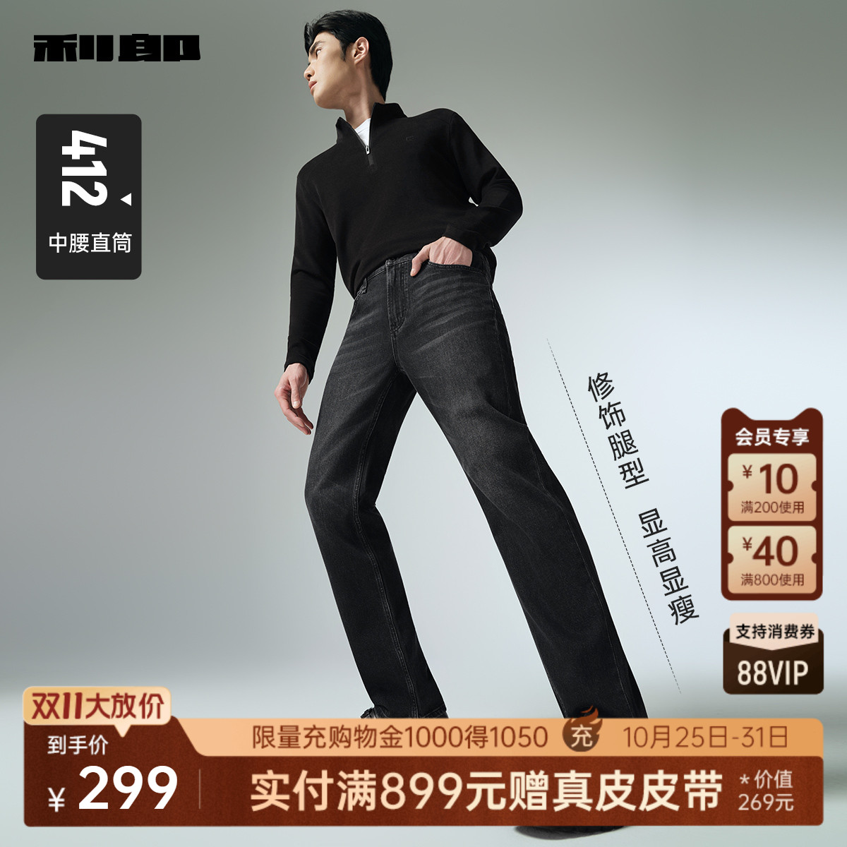 【宽松直筒】利郎官方 牛仔裤男士猫须弹力长裤2025秋季新款裤子,福建 泉州