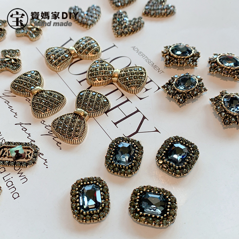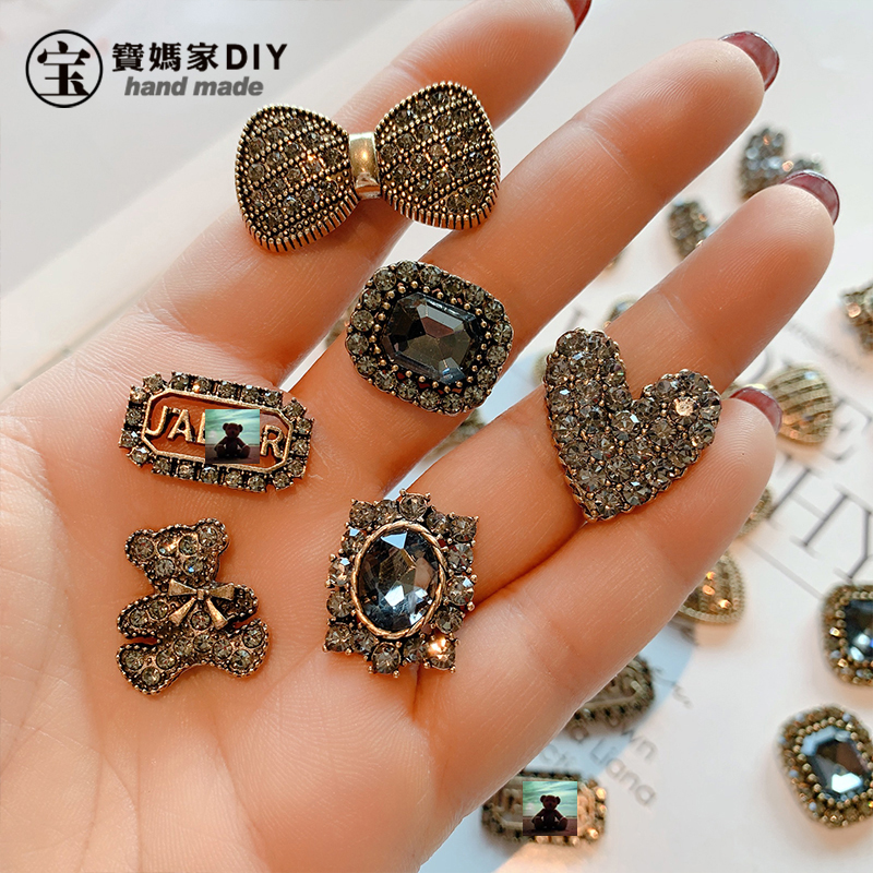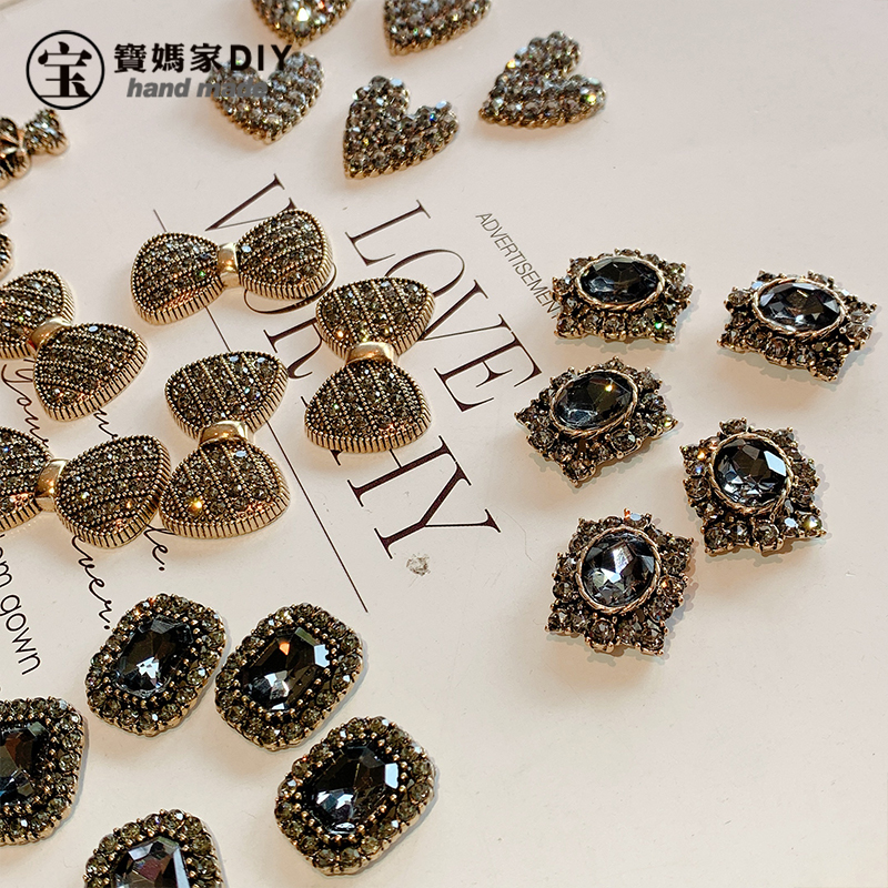 枪黑满钻复古系列宝妈家diy发饰材料定制捷克钻韩国边夹新款发夹