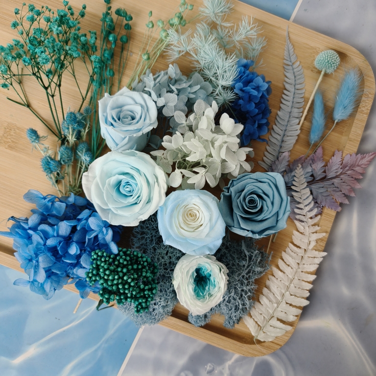 蓝色系永生花植物戒指干花DIY材料绣球千层金尤加利叶伴手礼装饰