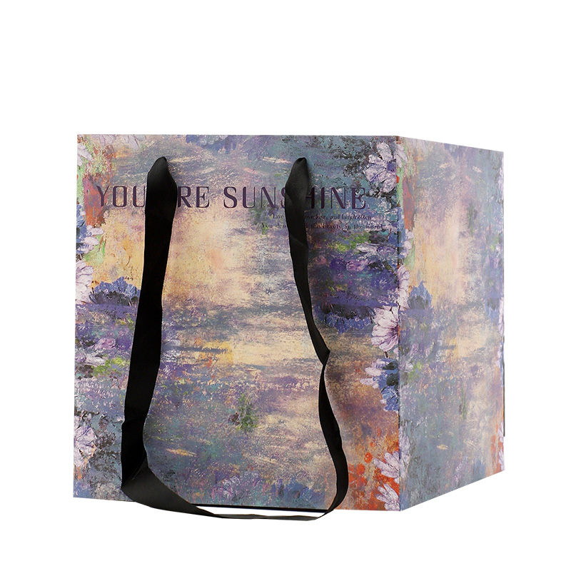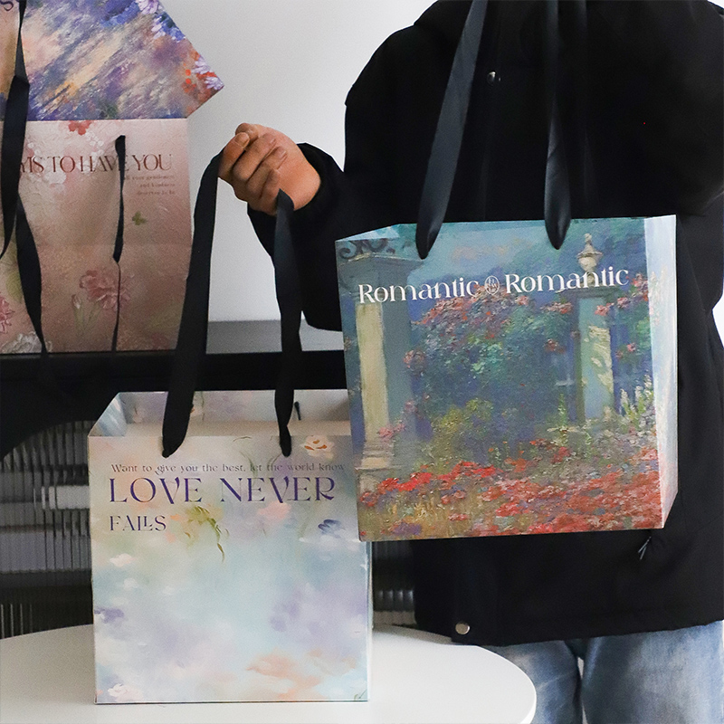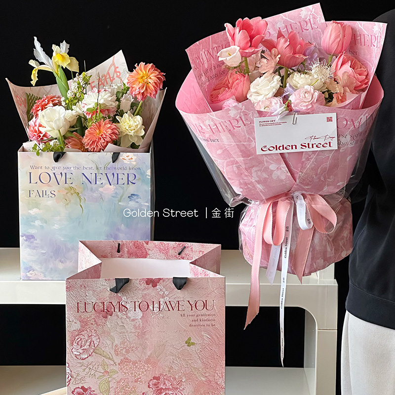 花喜爱新款花束手提袋油画风抱抱袋手提插花袋礼物鲜花包装材料,浙江 金华