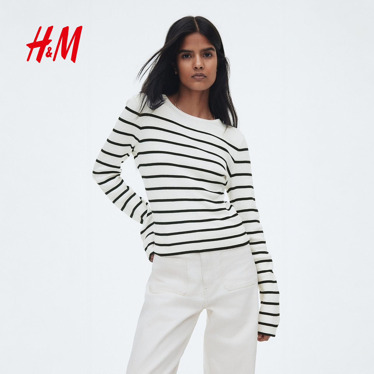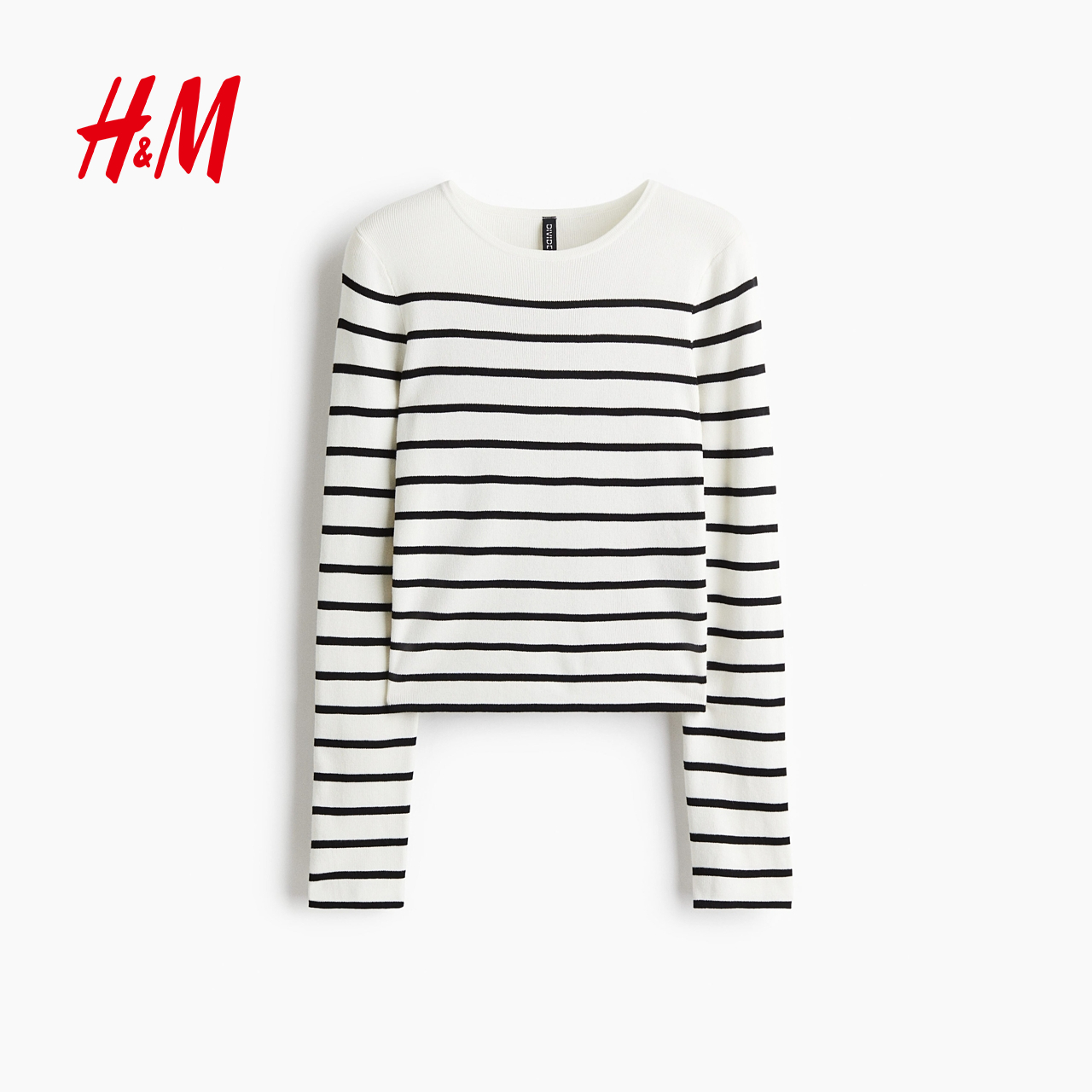 HM女装毛针织衫2025年秋季新款圆领条纹内搭毛衣长袖套衫1296843,江苏 苏州