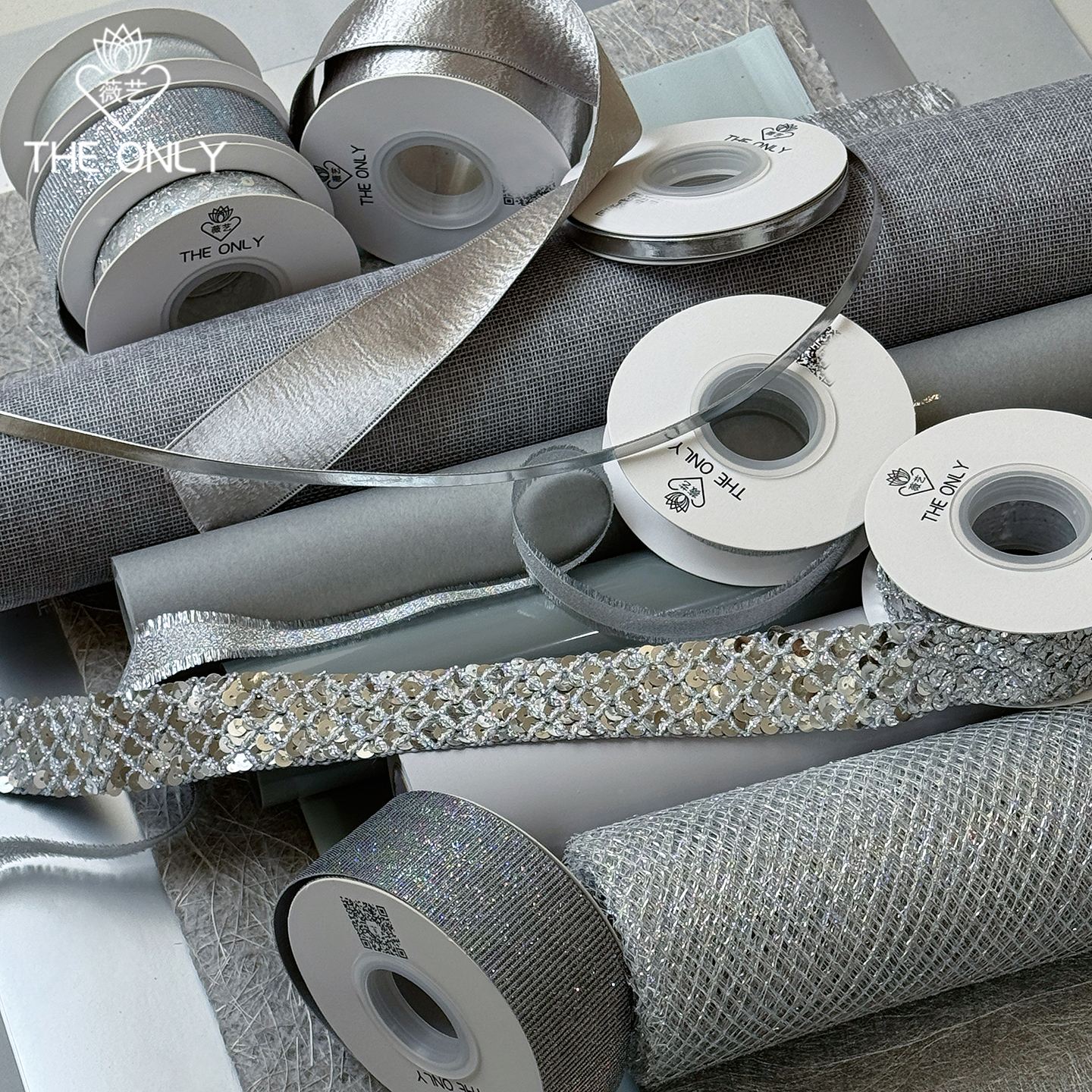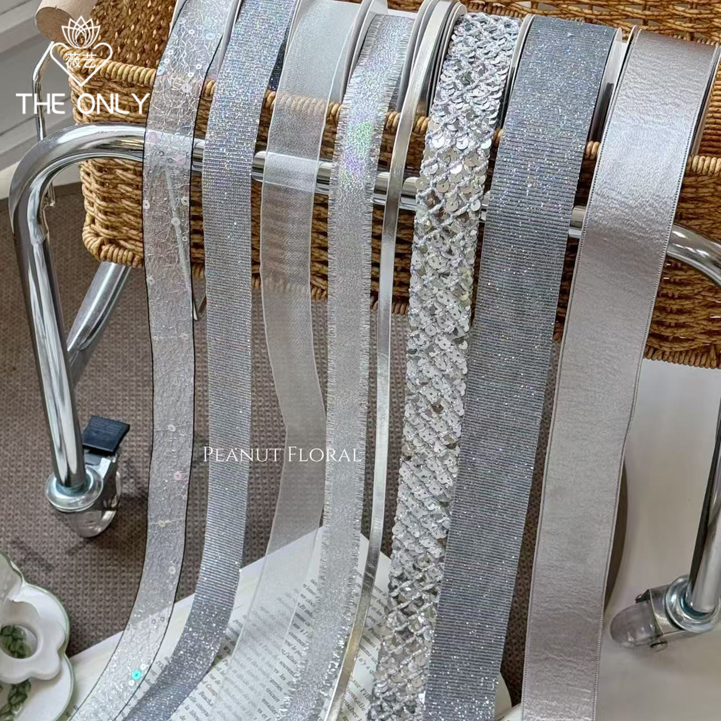 薇艺 高级银灰色系丝带创意花艺礼品蝴蝶结绑带手工diy包装材料,浙江 金华