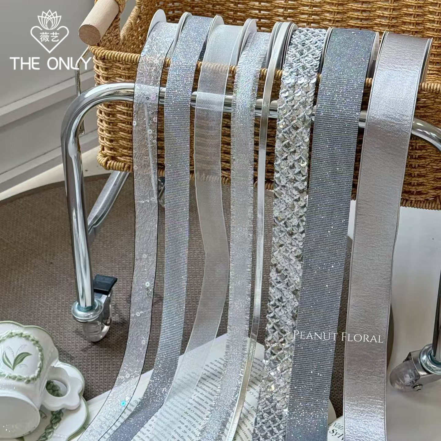 薇艺 高级银灰色系丝带创意花艺礼品蝴蝶结绑带手工diy包装材料