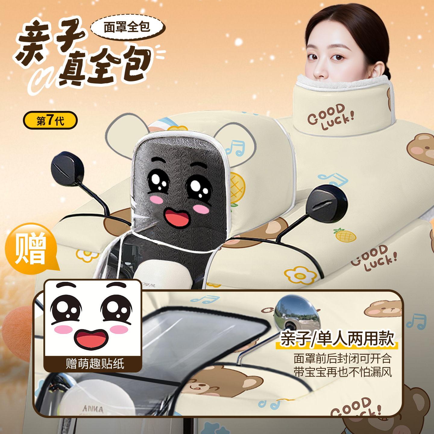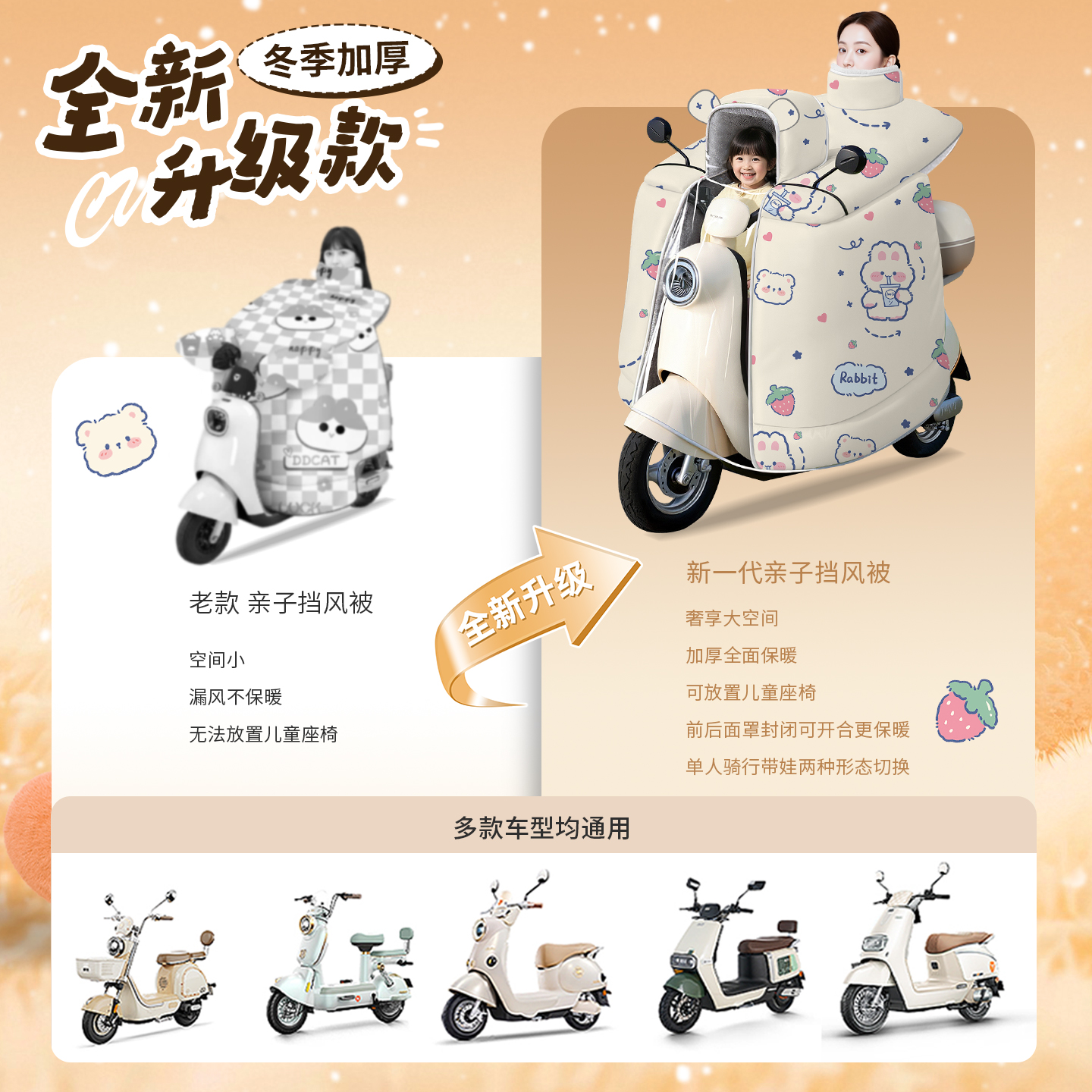 儿童亲子款电动车挡风被冬季加厚加绒斗篷电瓶摩托车防风2025新款,山东 临沂