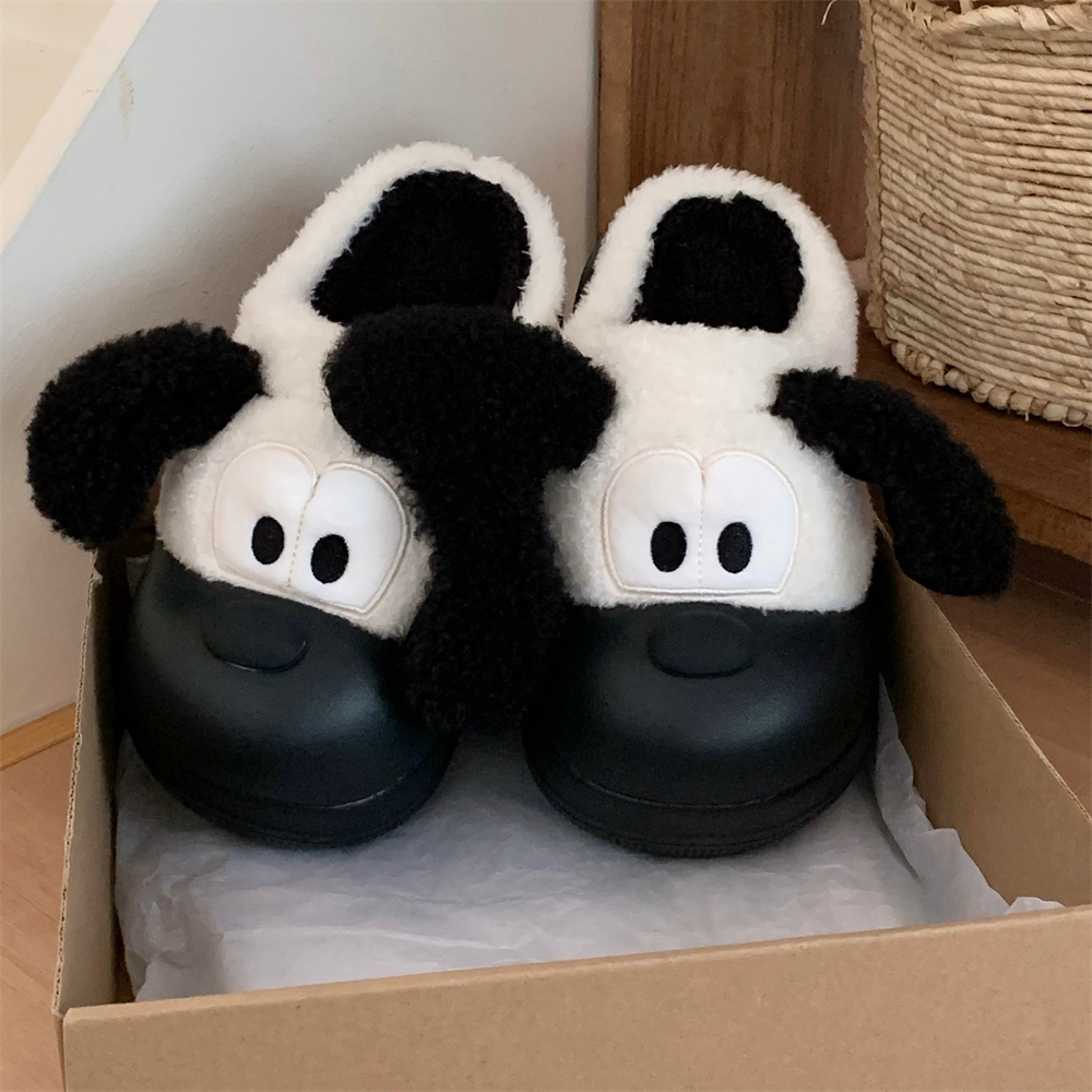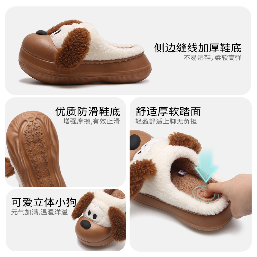 细细条 百搭网红冬天外穿毛毛棉鞋保暖防滑居家软萌狗狗棉拖鞋女,广东 揭阳