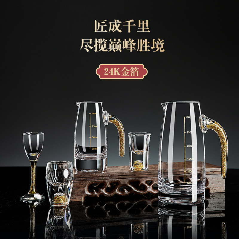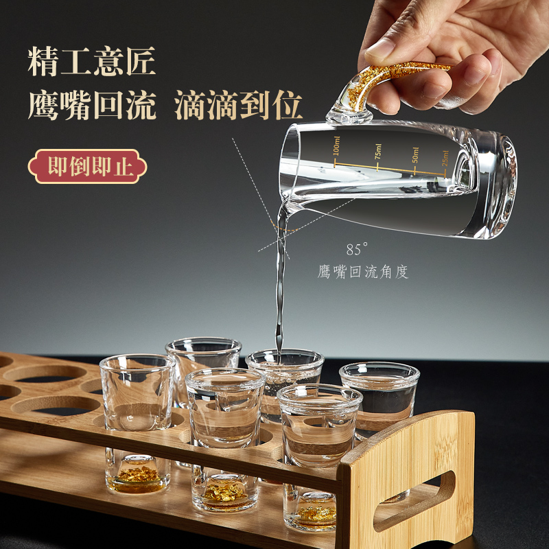 高档轻奢白酒杯酒具收纳套装水晶玻璃分酒器一口小酒杯子杯架家用,安徽 滁州