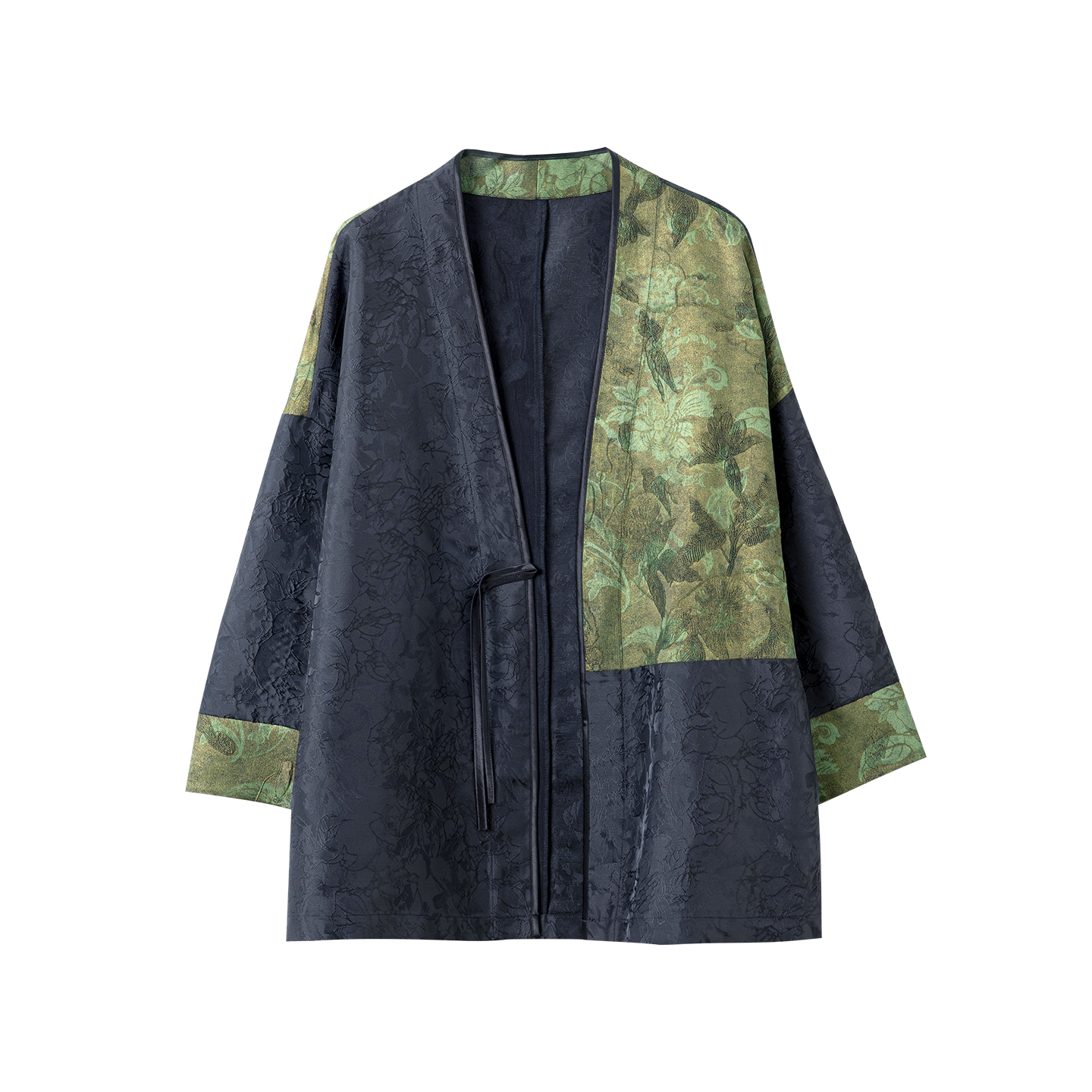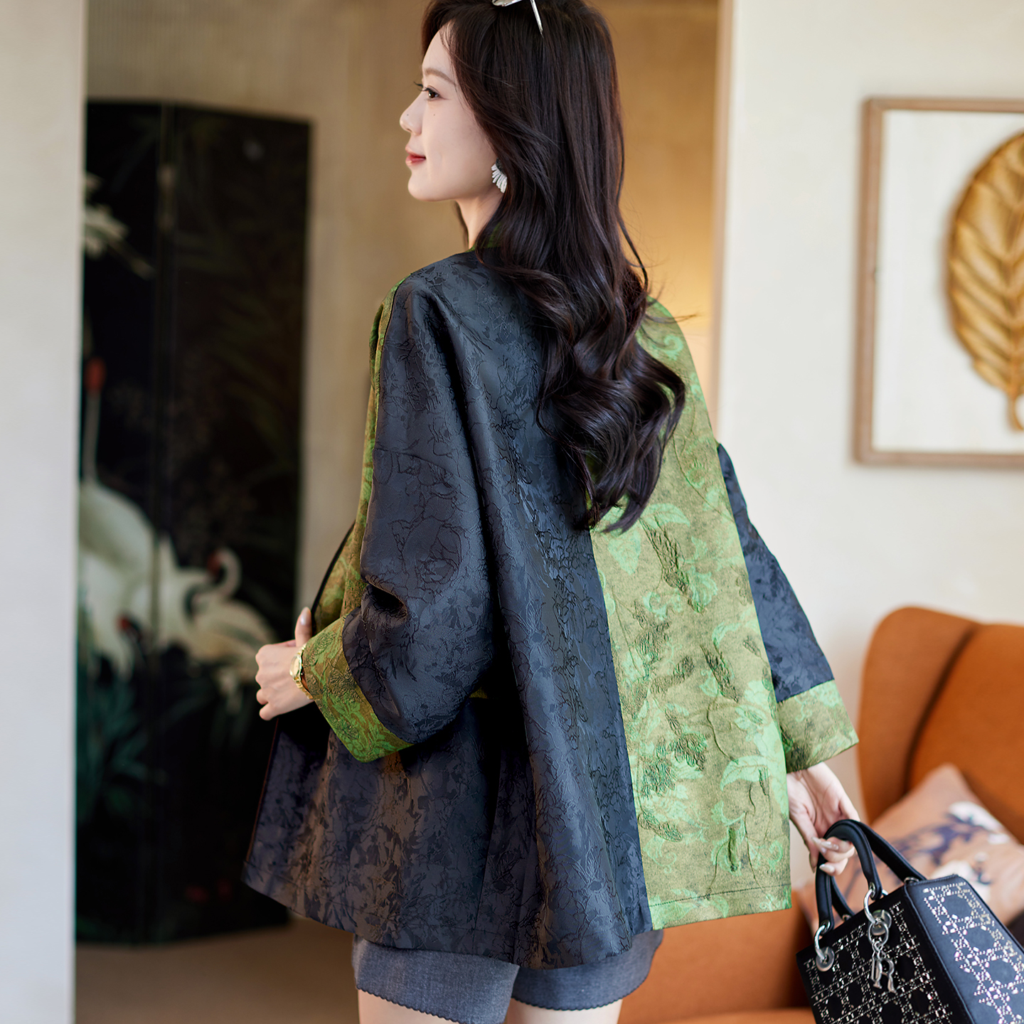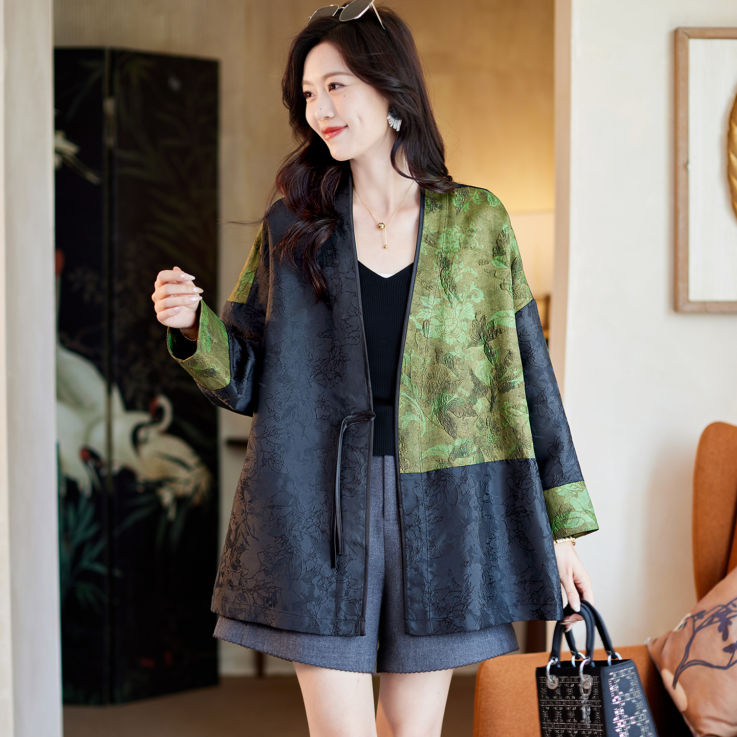 宝诗黎一粒扣提花拼接外套2025秋季气质高级感新中式宽松大码女装,浙江 杭州