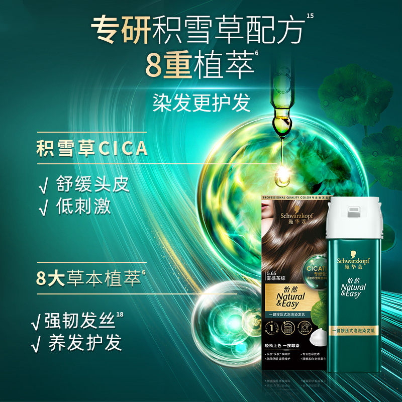【自营】施华蔻泡泡染发剂怡然一按染植物纯染发膏官方旗舰店正品,浙江 杭州