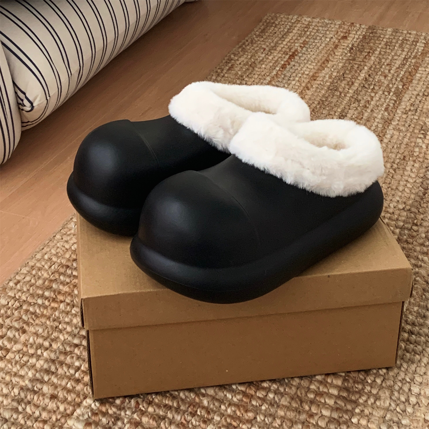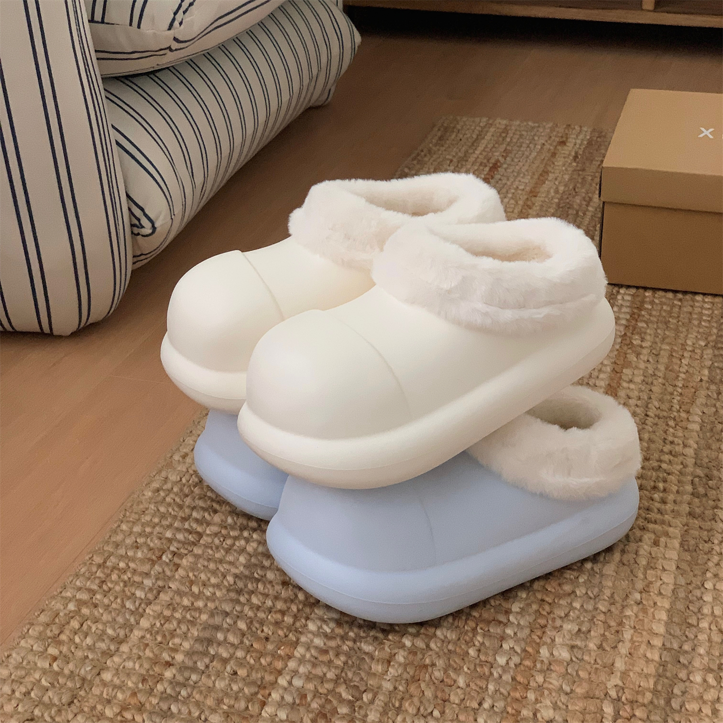 细细条 百搭外穿防滑居家保暖加绒月子棉鞋女冬季增高毛毛棉拖鞋,浙江 杭州