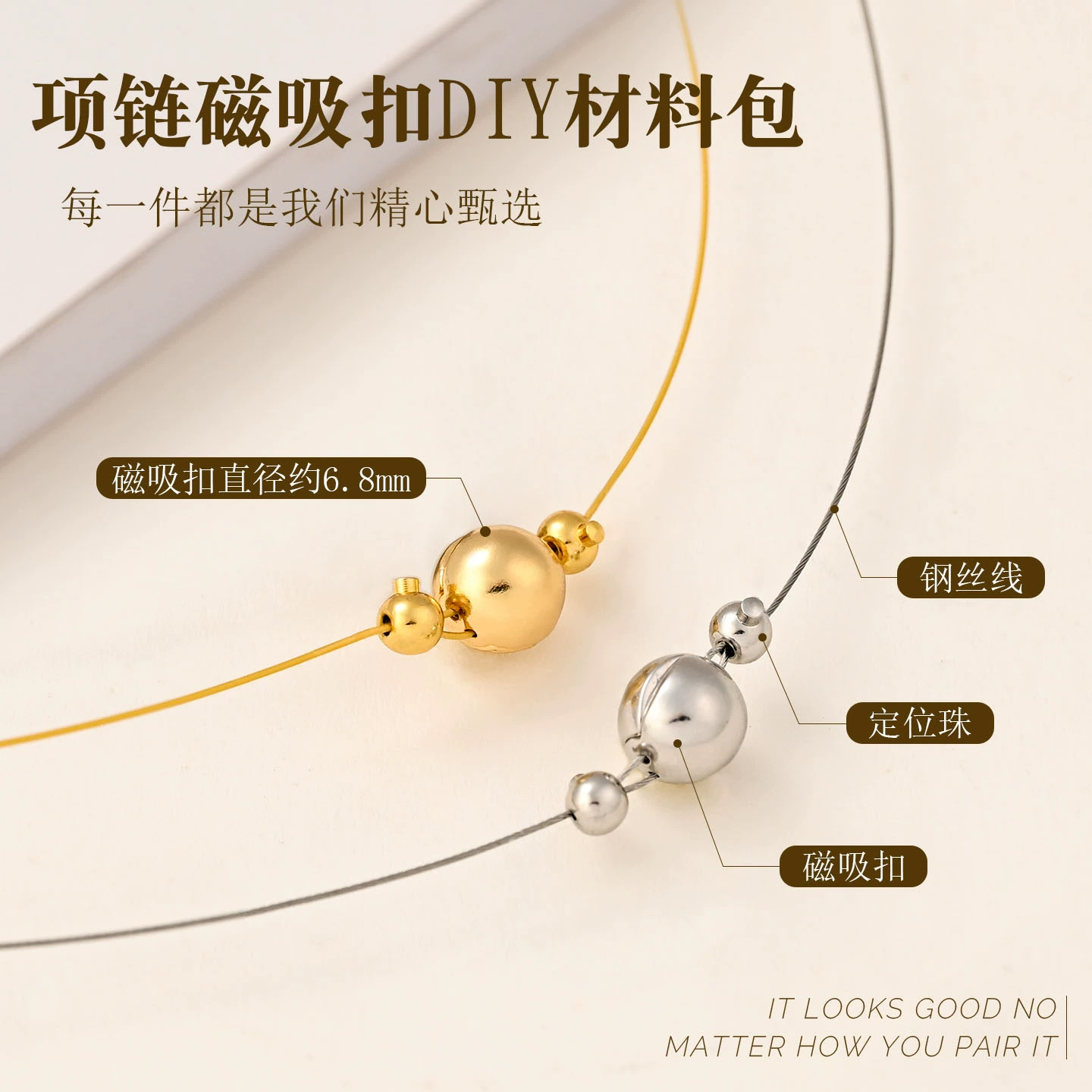 穿珍珠项链配件磁吸扣头手链串珠收尾连接扣钢丝线手工diy材料包