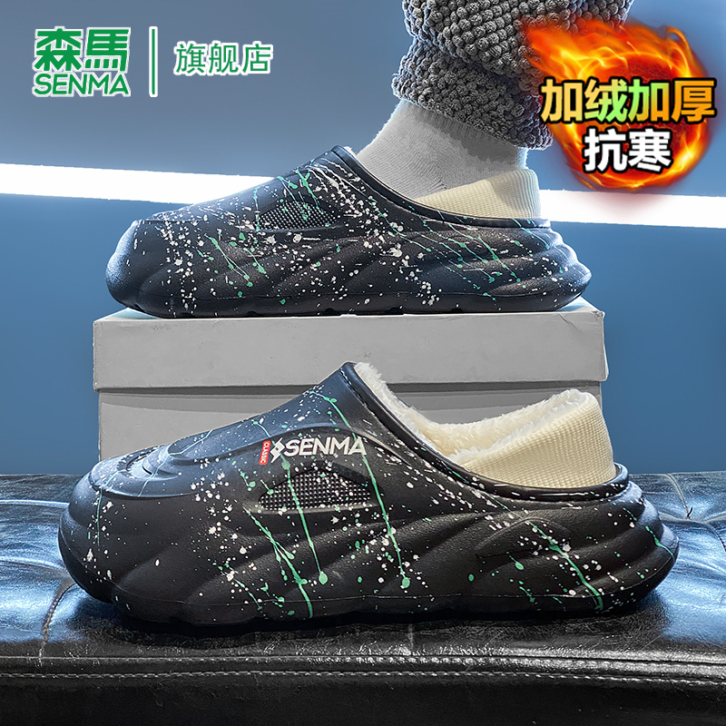 森马包头棉鞋冬季保暖加绒加厚室内舒适防滑居家鞋厚底包跟棉拖鞋