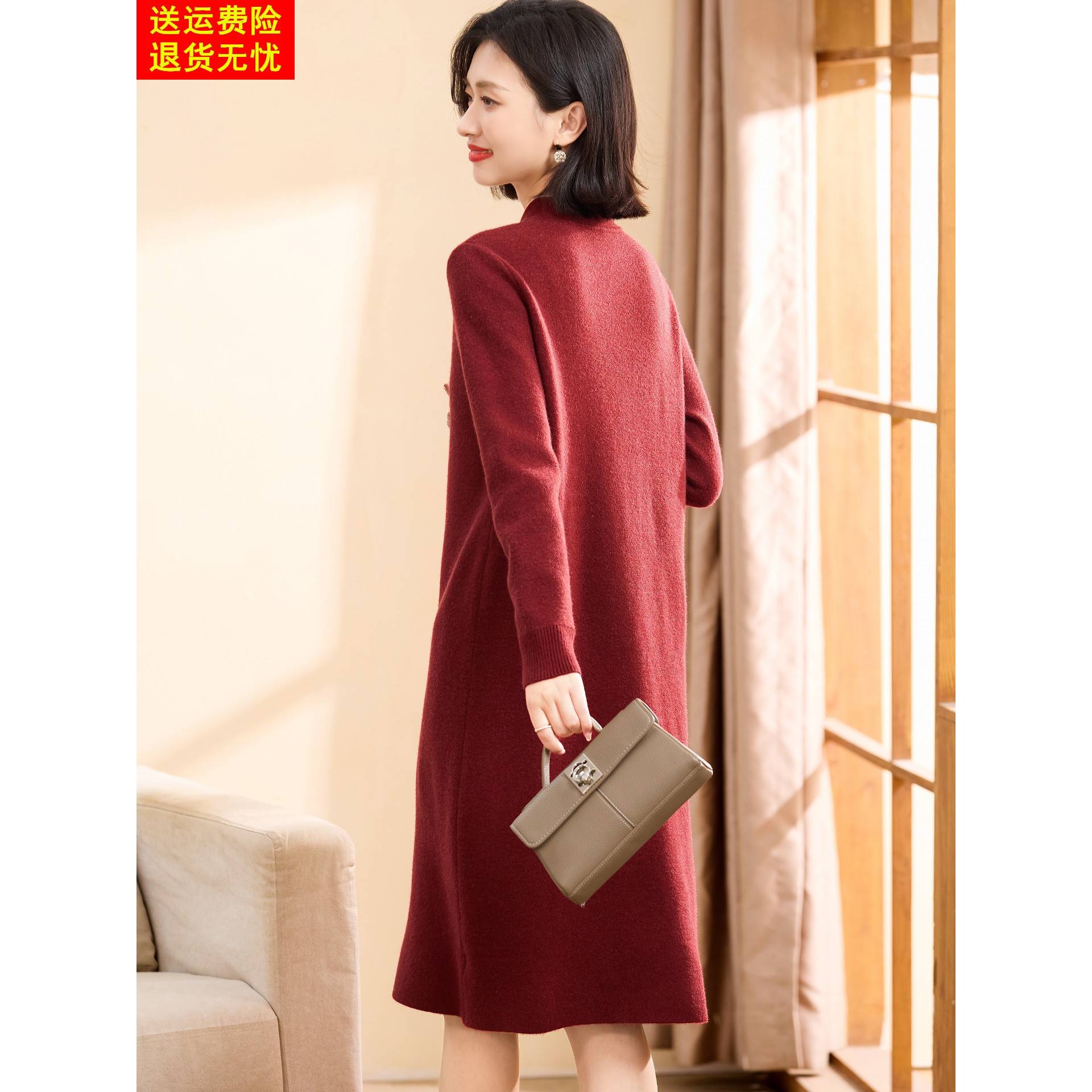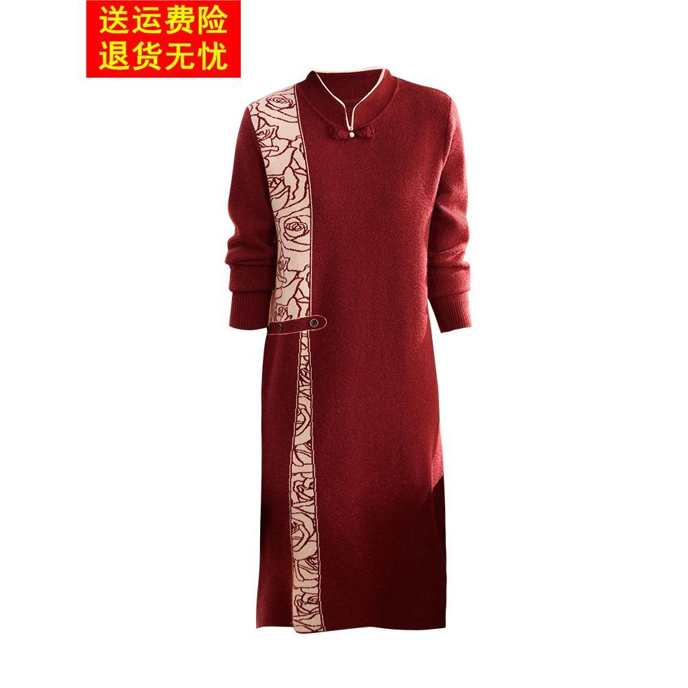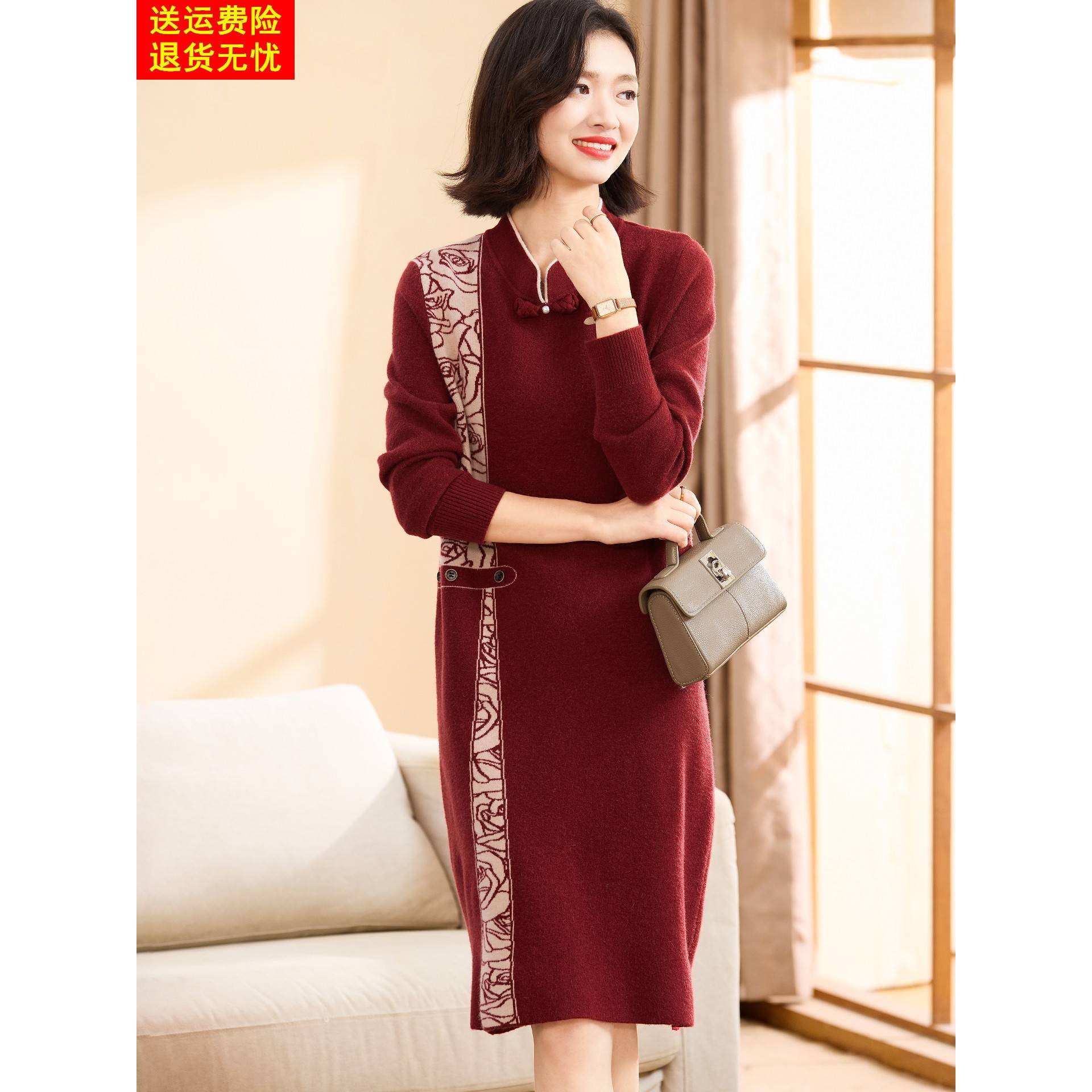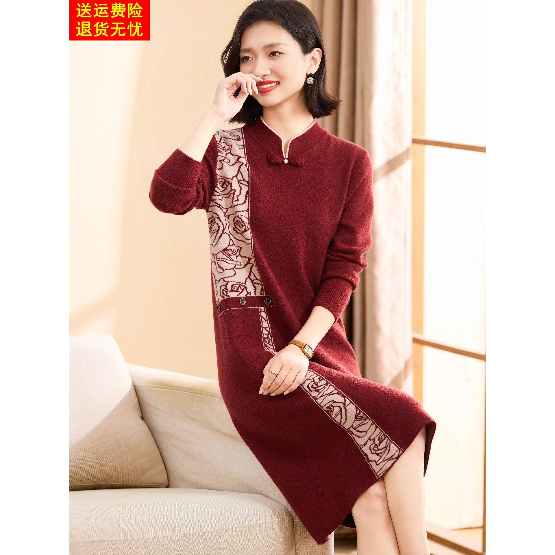 喜卉妈妈装秋冬连衣裙气质打底针织裙中老年女装冬季国风毛衣裙子,浙江 嘉兴