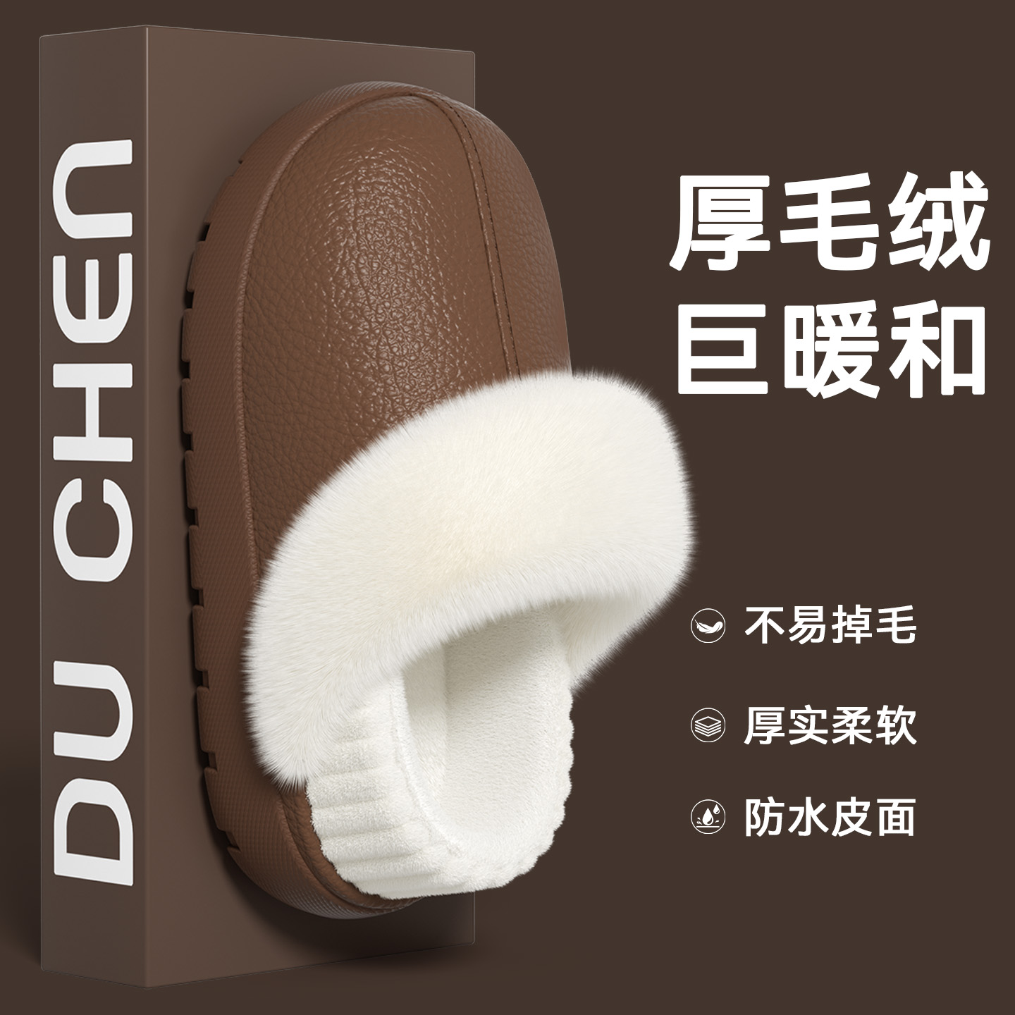 外穿防水包跟棉拖鞋男款冬季情侣居家厚底防滑运动保暖毛绒棉鞋女,浙江 金华