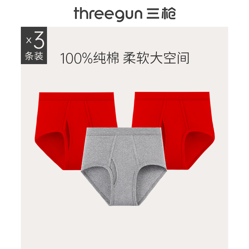 [3条]三枪爆款内裤男纯棉高腰大码三角裤亲肤透气中老年秋冬防磨,江苏 苏州