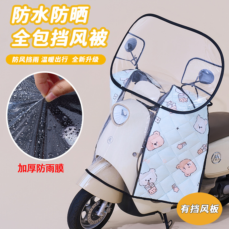 电动车挡风被防嗮遮阳防雨罩电瓶摩托车防寒防水前挡风板四季通用