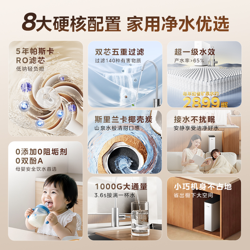 美的新品玲珑MAX净水器RO反渗透0阻垢家用过滤直饮星河同款1000G,广东 佛山