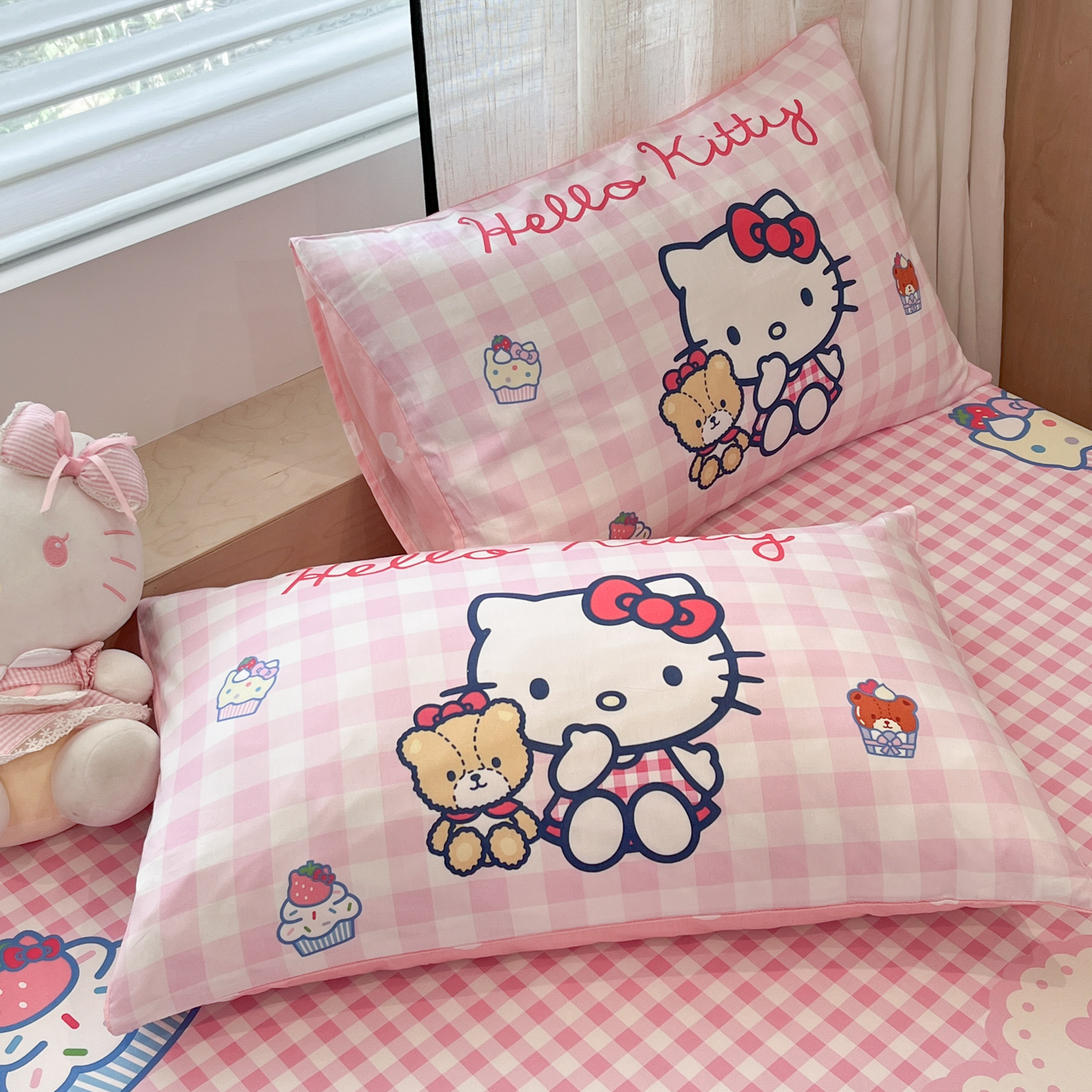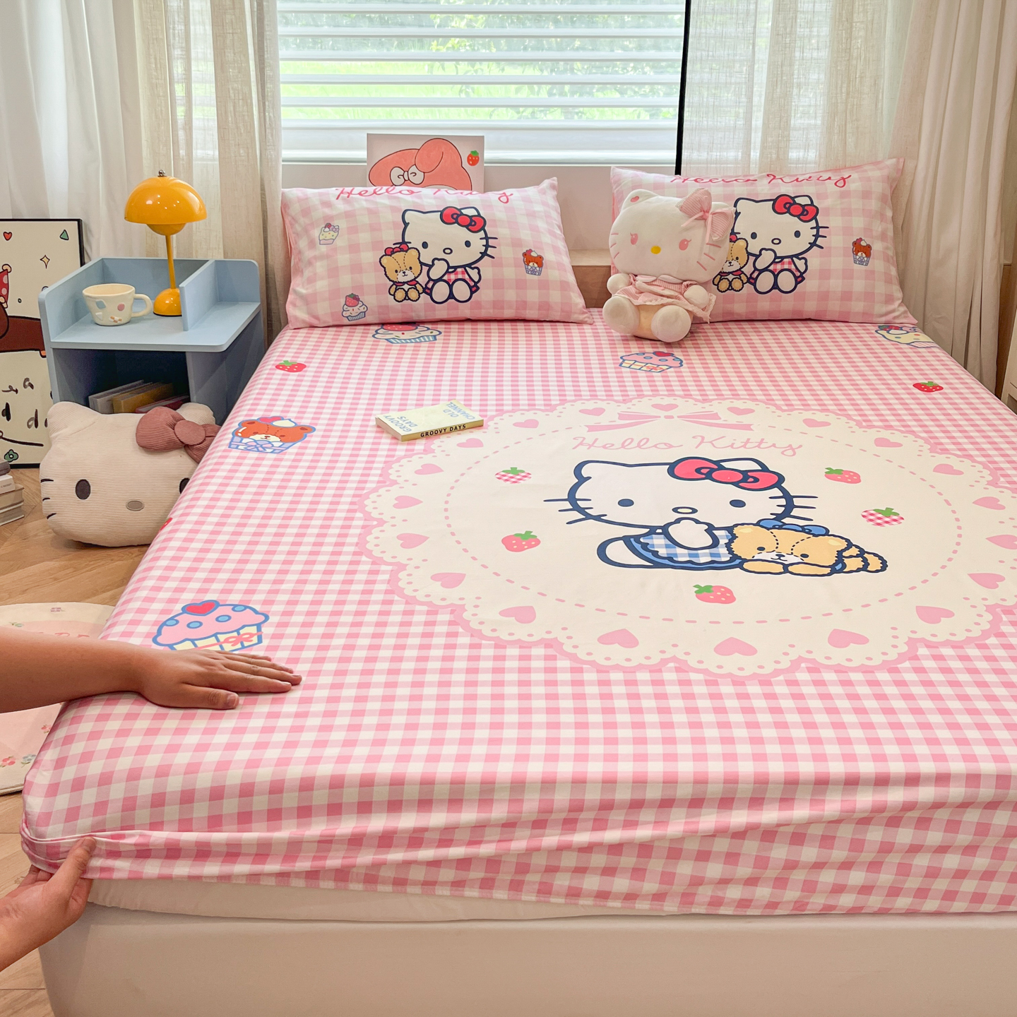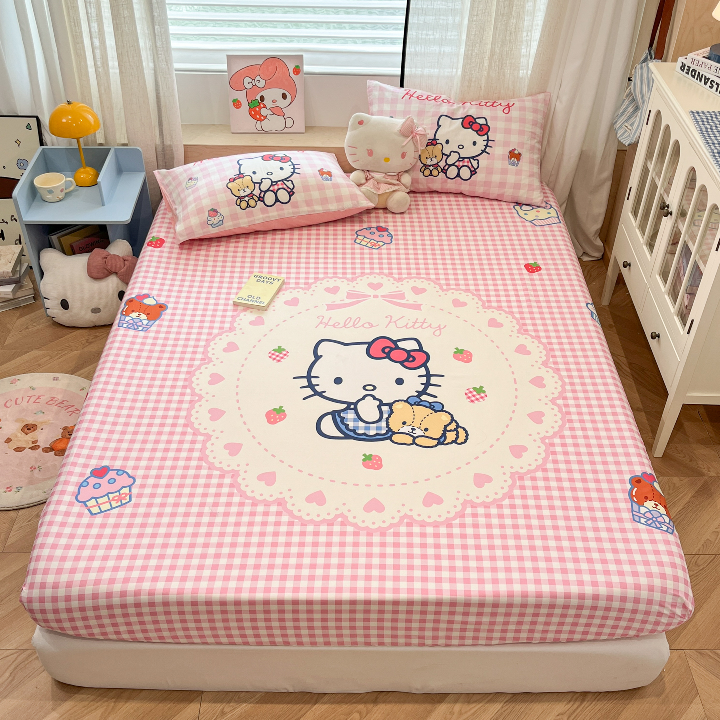helloKitty纯棉床单床笠三件套卡通女孩床罩全棉床垫保护套防尘罩