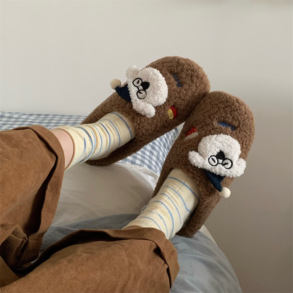 细细条 情侣棉拖鞋可爱小狗冬季ins男女时尚百搭防滑居家月子棉鞋,广东 揭阳