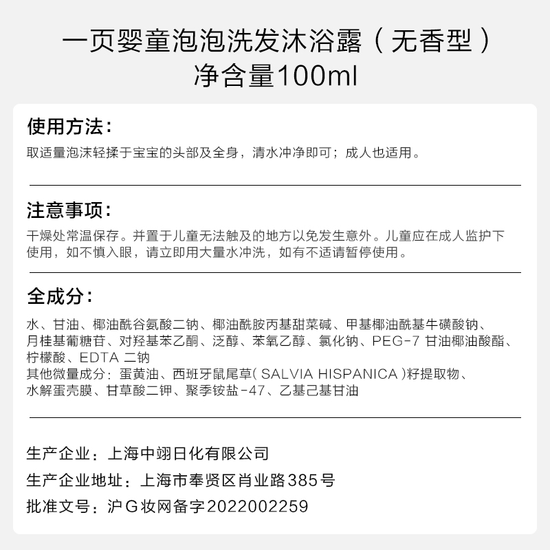 一页婴童洗护宝宝泡泡洗发沐浴露身体护肤,上海