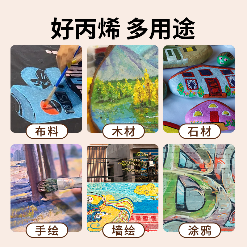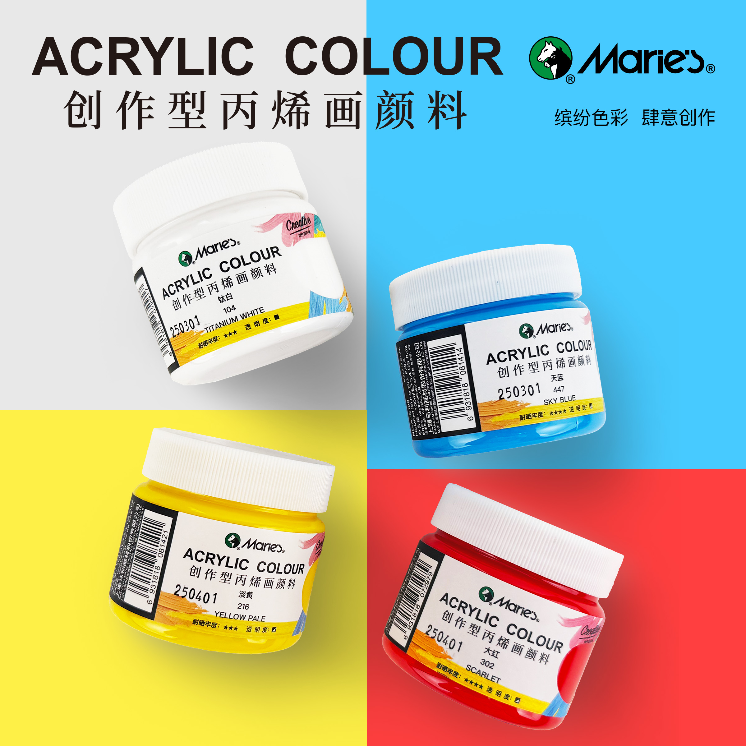 马利丙烯颜料防水防晒不掉色100ml涂色丙烯画diy24色墙绘300ml手绘衣服涂鸦材料彩绘流体画炳稀肌理画