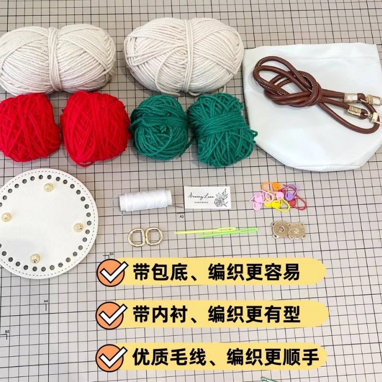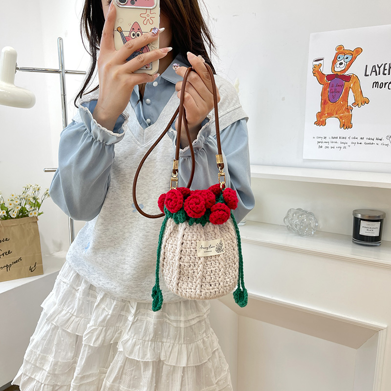 玫瑰花束手工编织包包diy钩织材料包自制毛线成品水桶斜挎包礼物,河北 保定