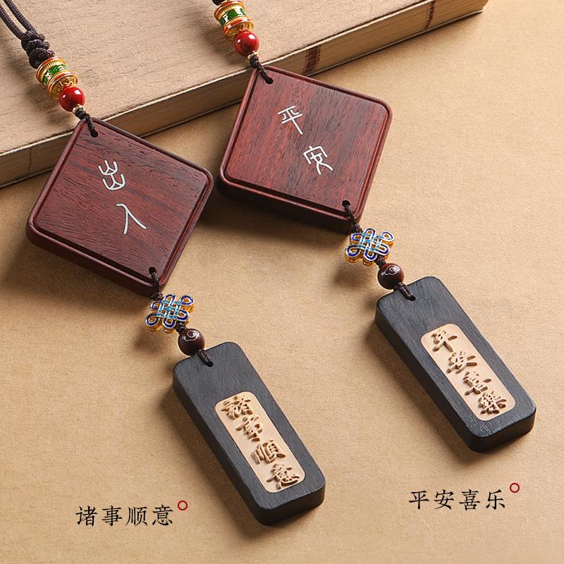 纯银镶嵌檀木出入平安高档汽车挂件车内装饰品车载后视镜吊饰吊坠,江苏 徐州