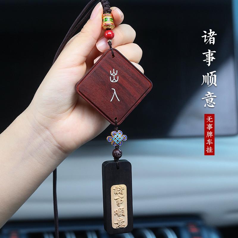 纯银镶嵌檀木出入平安高档汽车挂件车内装饰品车载后视镜吊饰吊坠