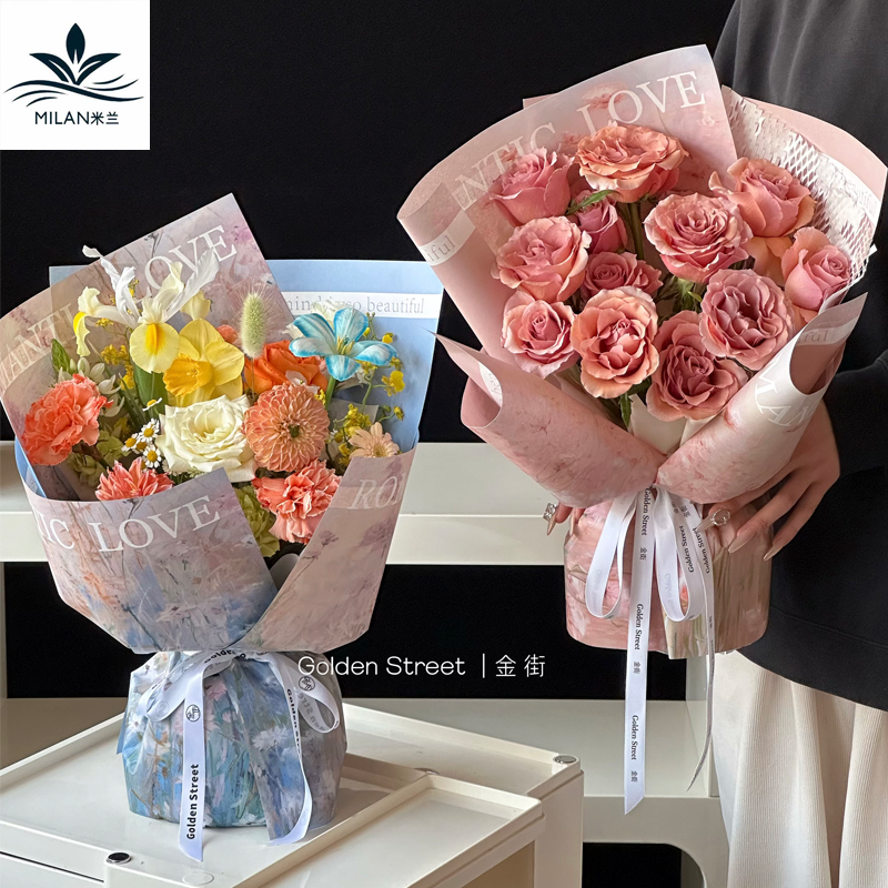 米兰新款春日油画系列鲜花花束包装纸花艺礼物包花纸DIY材料简约