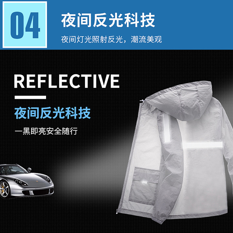 工地反光防晒衣男士夏季外套新款冰丝超薄透气外卖夜行运动皮肤衣
