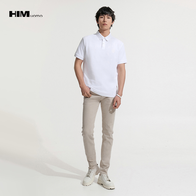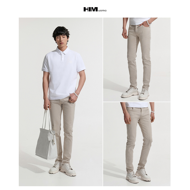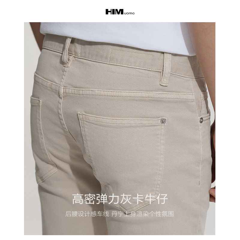 HIM汉崇 紧身弹力牛仔裤男浅色修身小脚休闲百搭长裤 2025夏季,广东 广州