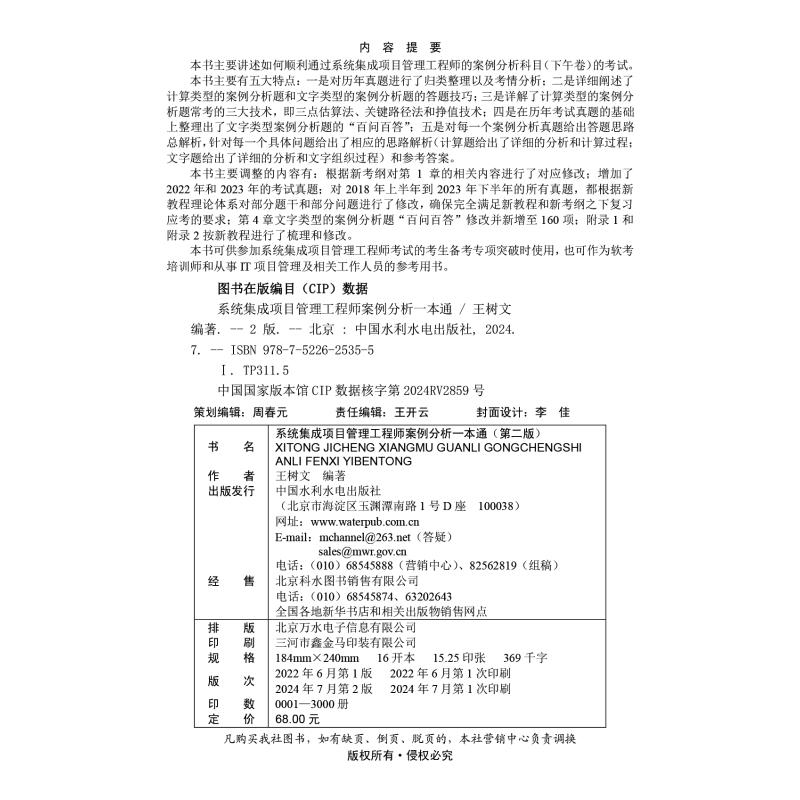 系统集成项目管理工程师案例分析一本通(第二版) 中国水利水电出版社 王树文 编 计算机考试其它