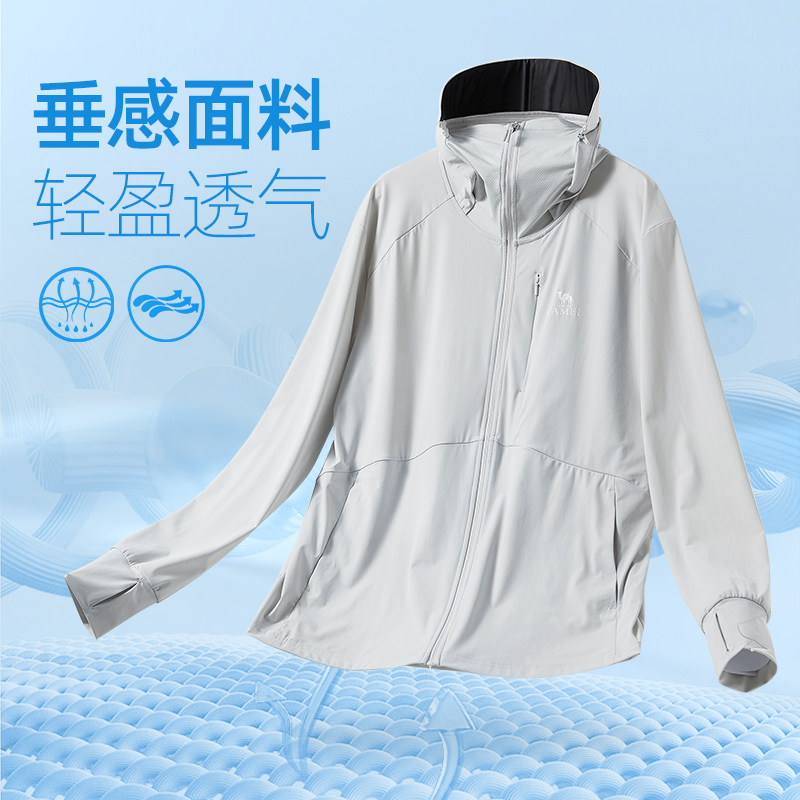 骆驼户外防紫外线防晒服男女2024春季新款冰丝凉感透气黑胶防晒衣
