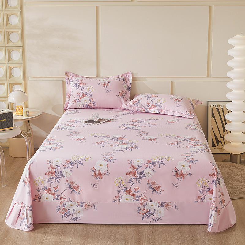 60支全棉床单枕套2三件套高支高密纯棉斜纹加厚面料2.7米简约花卉,江苏 南通